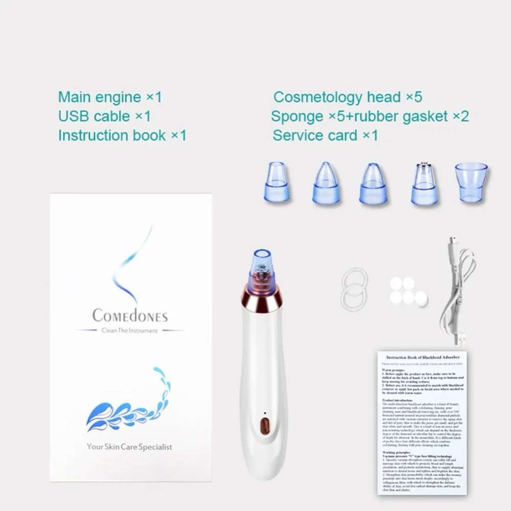 Посылка: 1 шт. Основное устройство, 5 шт. голова для косметолога, 5 шт. губка, 2 шт. резиновое кольцо, 1 шт. usb-кабель, 1 шт. руководство пользователя на английском языке