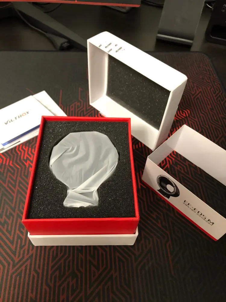 Отлично упакован, всё пришло в целостности! Работает на canon m6 eos, автофокус работает