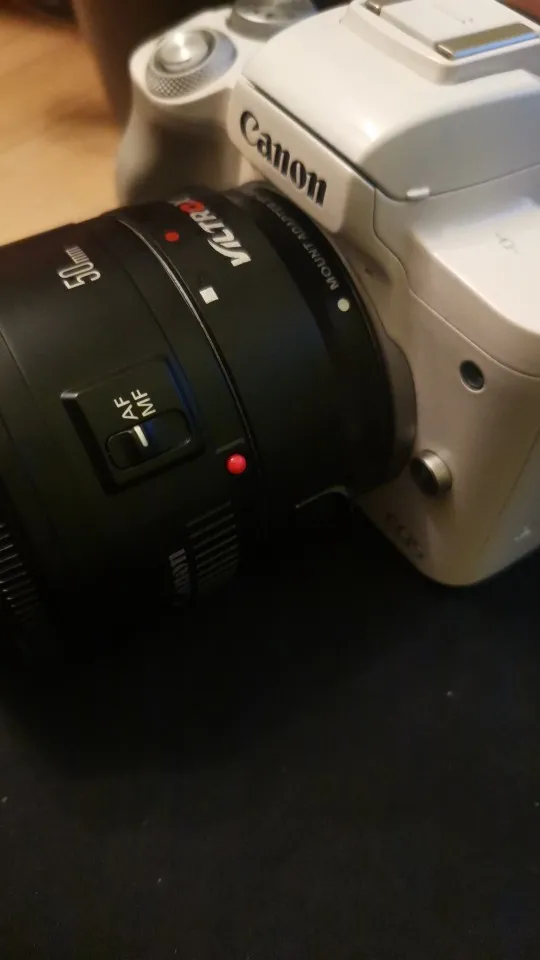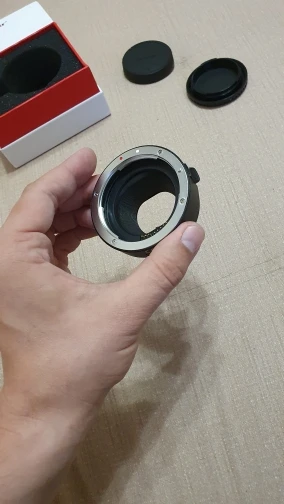 Отличный адаптер! Отлично работает с объективом my m50 и canon 50 мм 1,8.