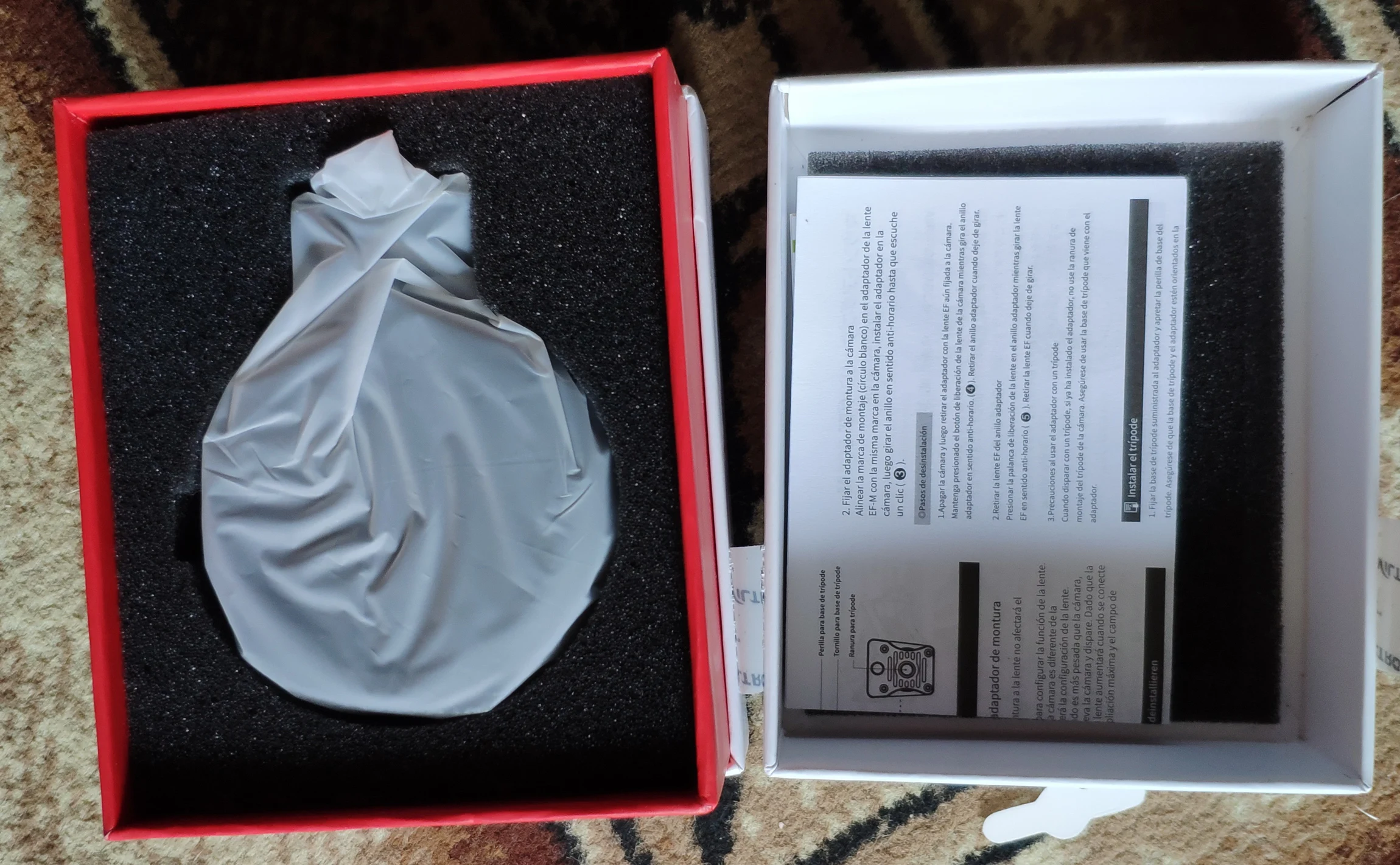В Екатеринбург товар приехал за неделю. Упаковка целая, коробочка хорошая. Сам переходник силит плотно,без люфотов. Наконец то canon m50 заиграл ✌
