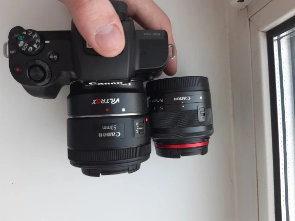 фокусировка на m50 быстрая, ранее ef50mm1.8 stm использовал на 2000d, так на 2000d фокусировка была медленнее. переходник+палтик по длинне почти как и китовый объектив, но это не страшно, важнее функционал