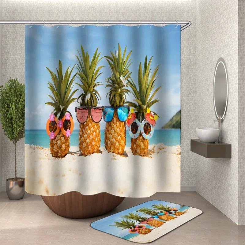 Занавеска для душа с ананасом и капюшоном, занавеска для ванной комнаты, 3D тканевая забавная занавеска для душа, водонепроницаемая занавеска или коврик