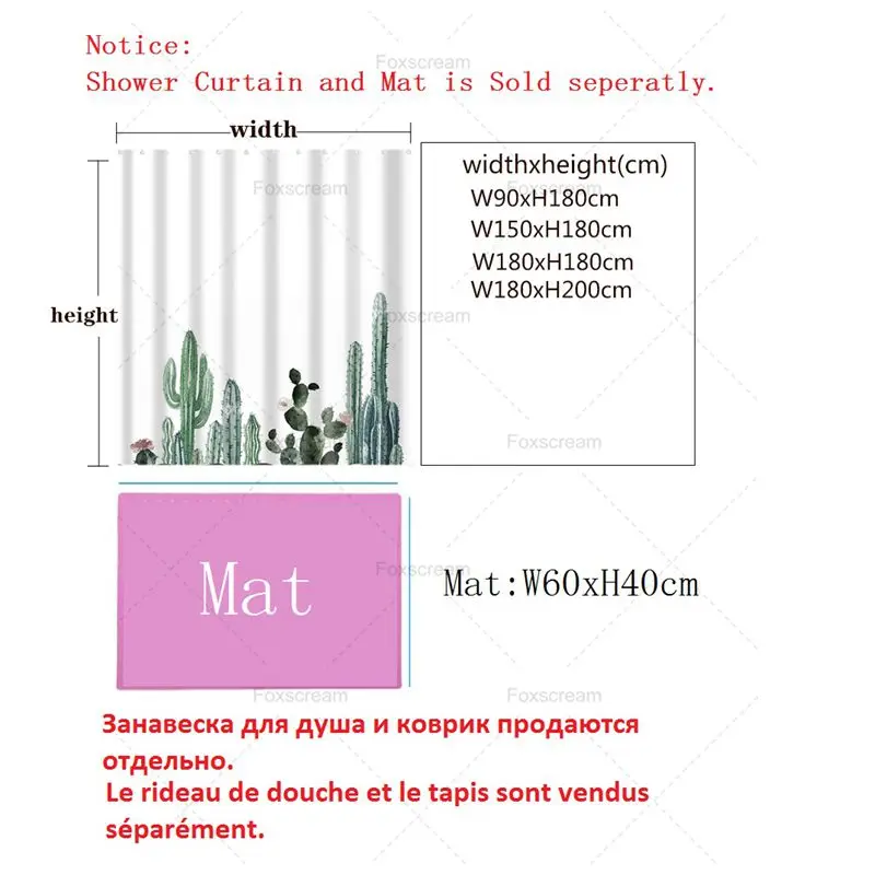 Занавеска для душа, с крючками, водонепроницаемая, с ковриком