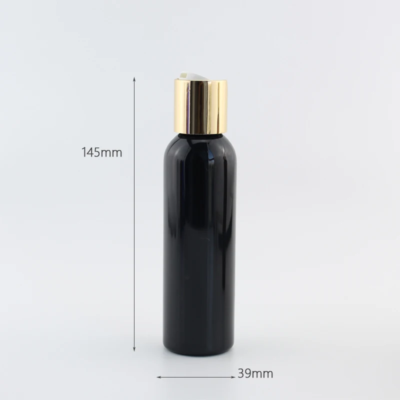 120 мл пустая круглая черная жидкая бутылка для мыла, косметическая бутылка, Золотая алюминиевая крышка диска, металлическая крышка, бутылки для лосьона 4 унции