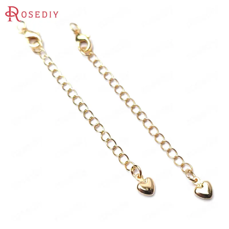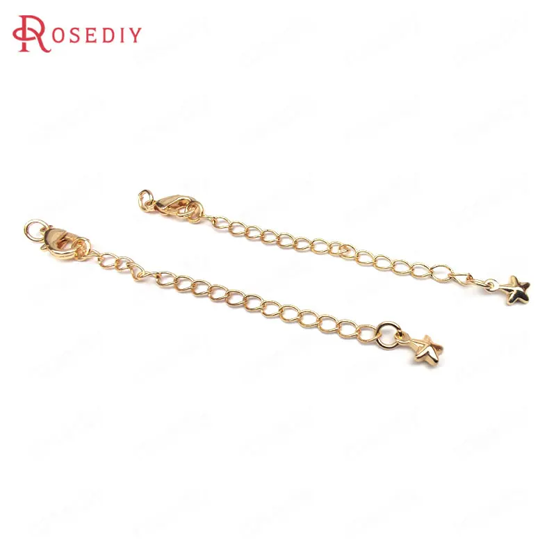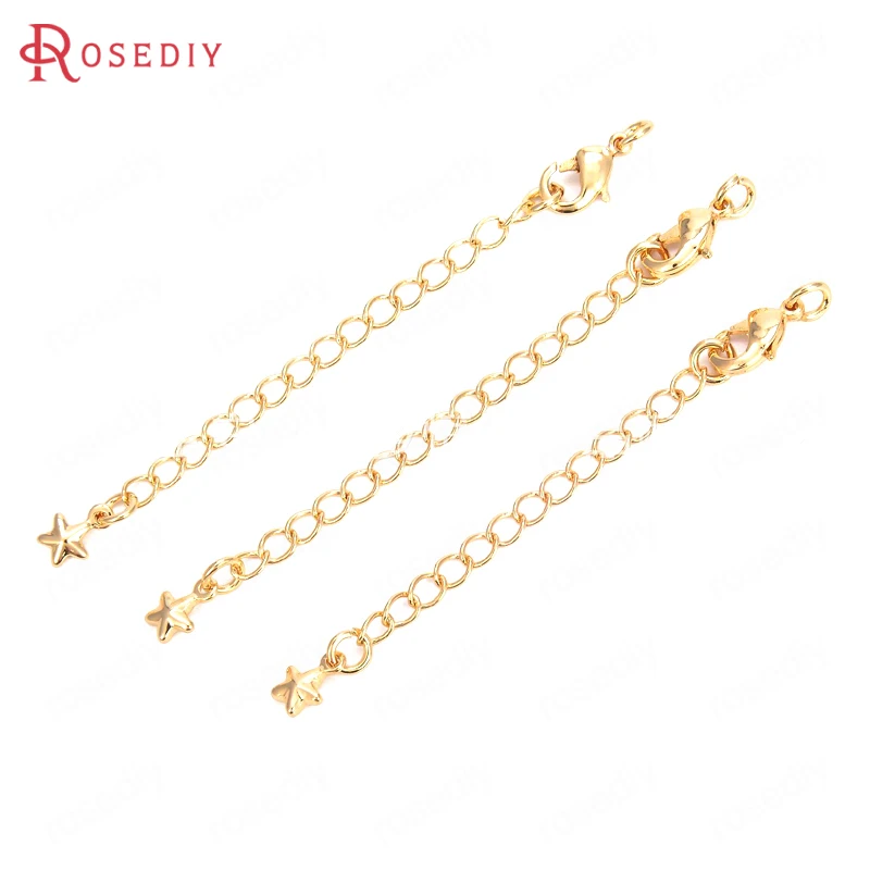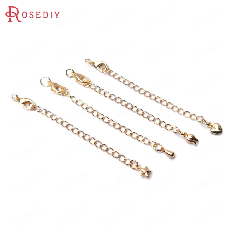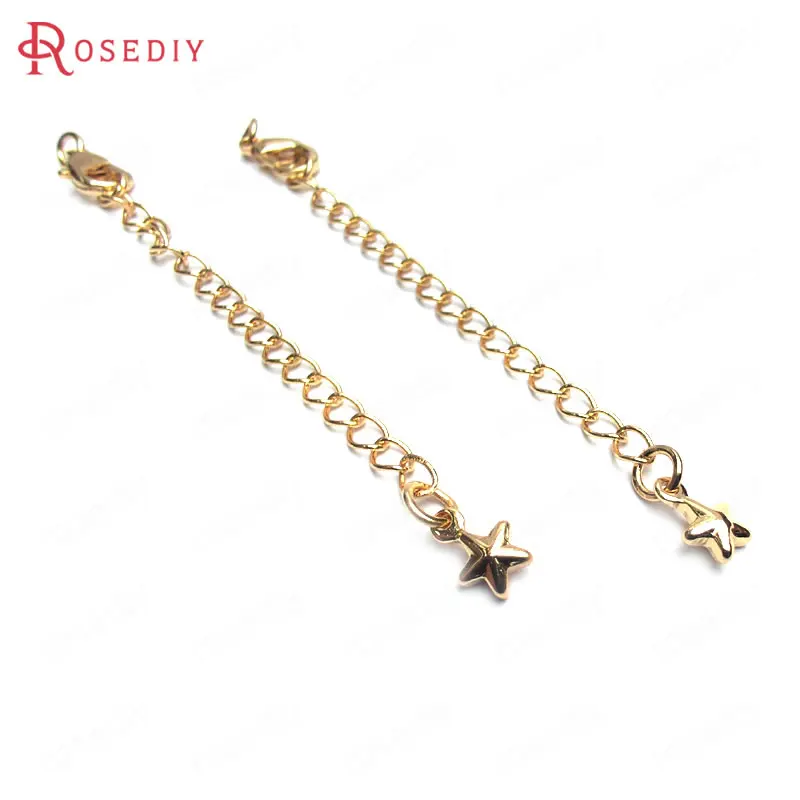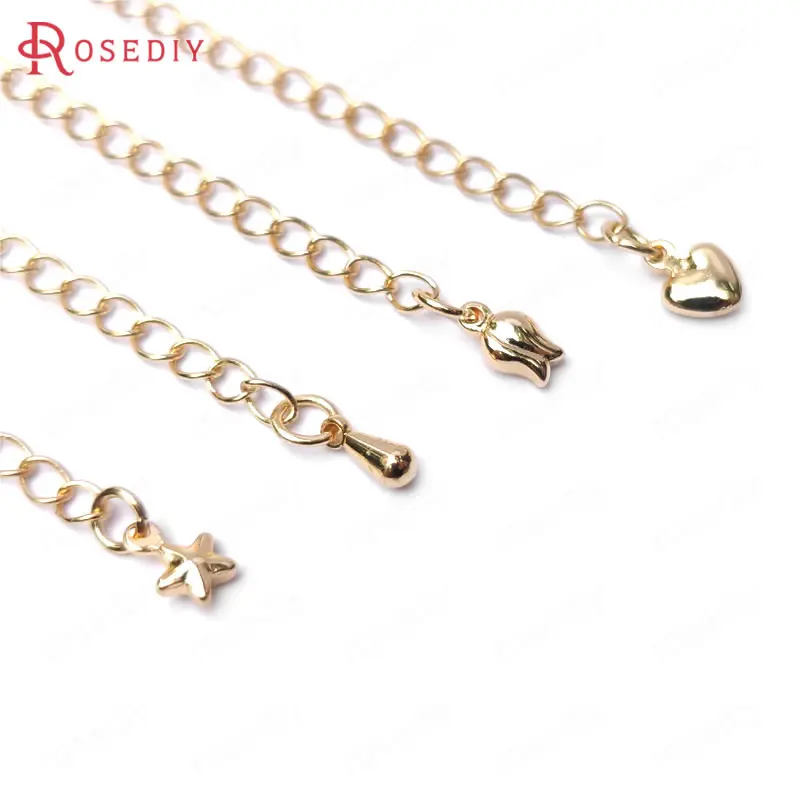Цепочка-удлинитель для ювелирных изделий, из латуни сердце цветок звезды пробы, 10 шт., длина 65 мм или 70-75 мм, цвет золото 24 к