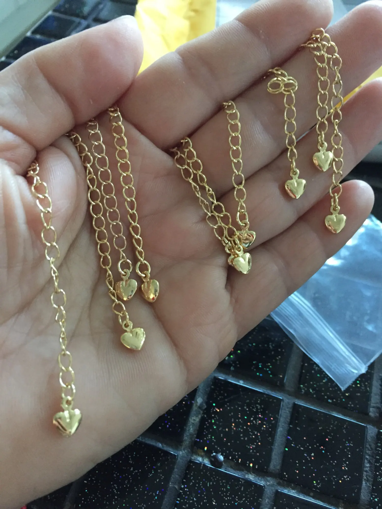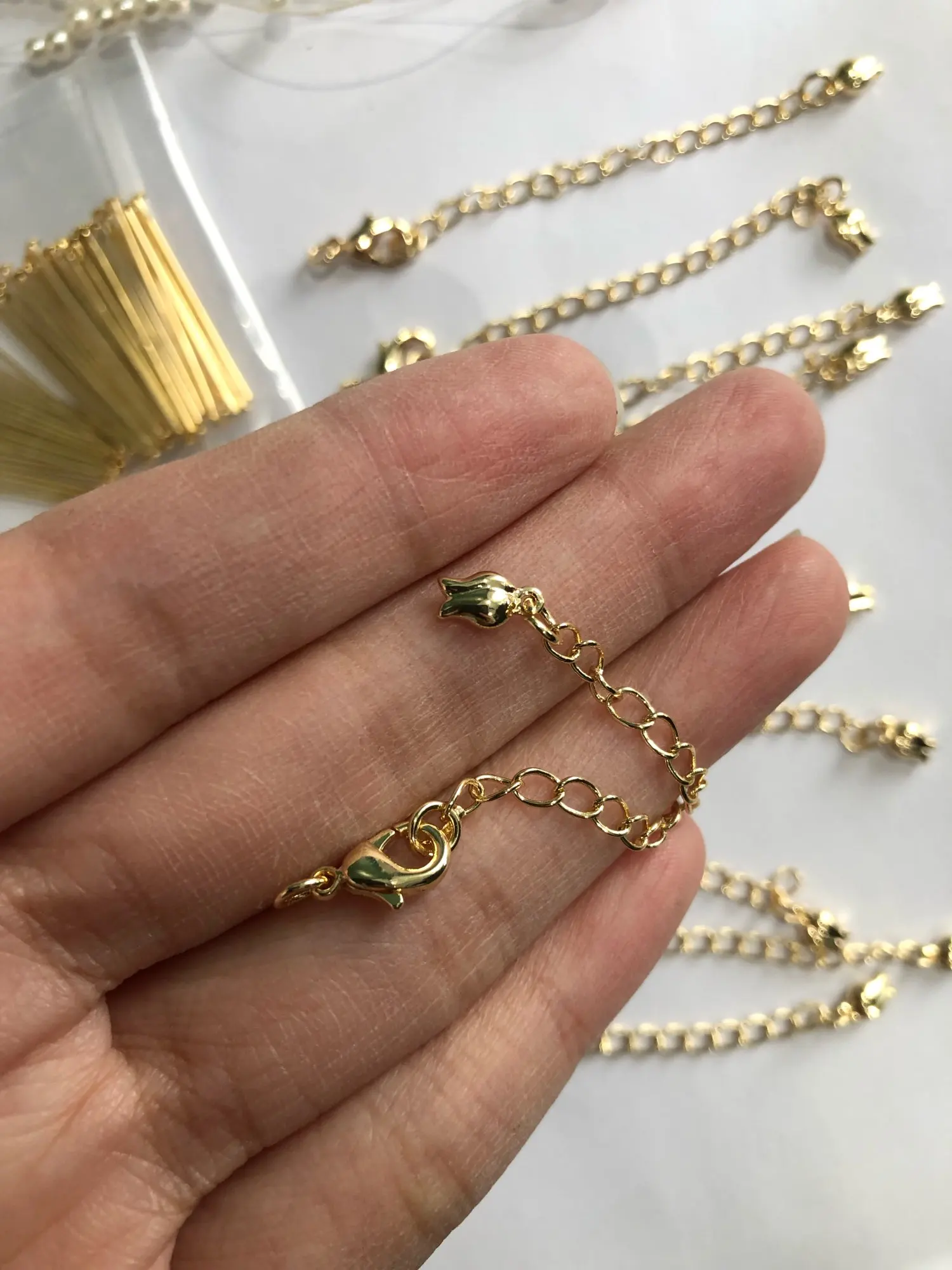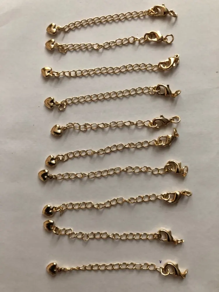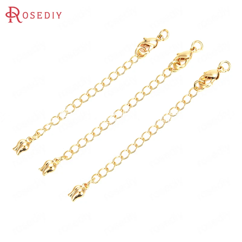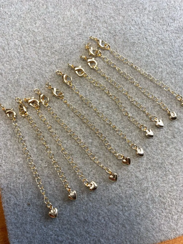Цепочка-удлинитель для ювелирных изделий, из латуни сердце цветок звезды пробы, 10 шт., длина 65 мм или 70-75 мм, цвет золото 24 к