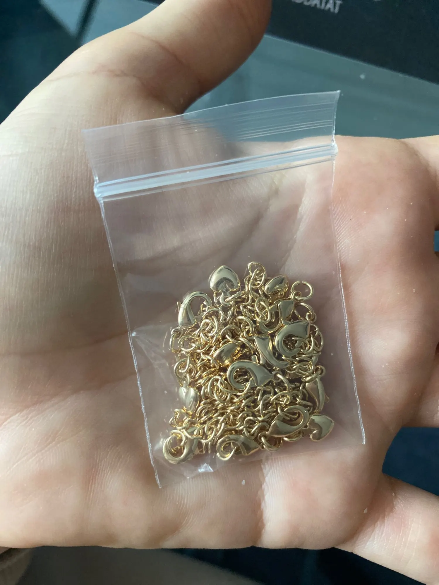 Детальки маленькие и не плохие, хотя где гарантия, что это позолота, никакой пробы ни сертификата нет! А продавец после моего заказа 22!!! дня праздновал свой новый год и только потом собрался отправлять посылку. За это я снизила оценку. " замочка из 10 можно выбросить, они не закрываются. Нужно тщательнее проверять что вы отправляете! Цена не маленькая!