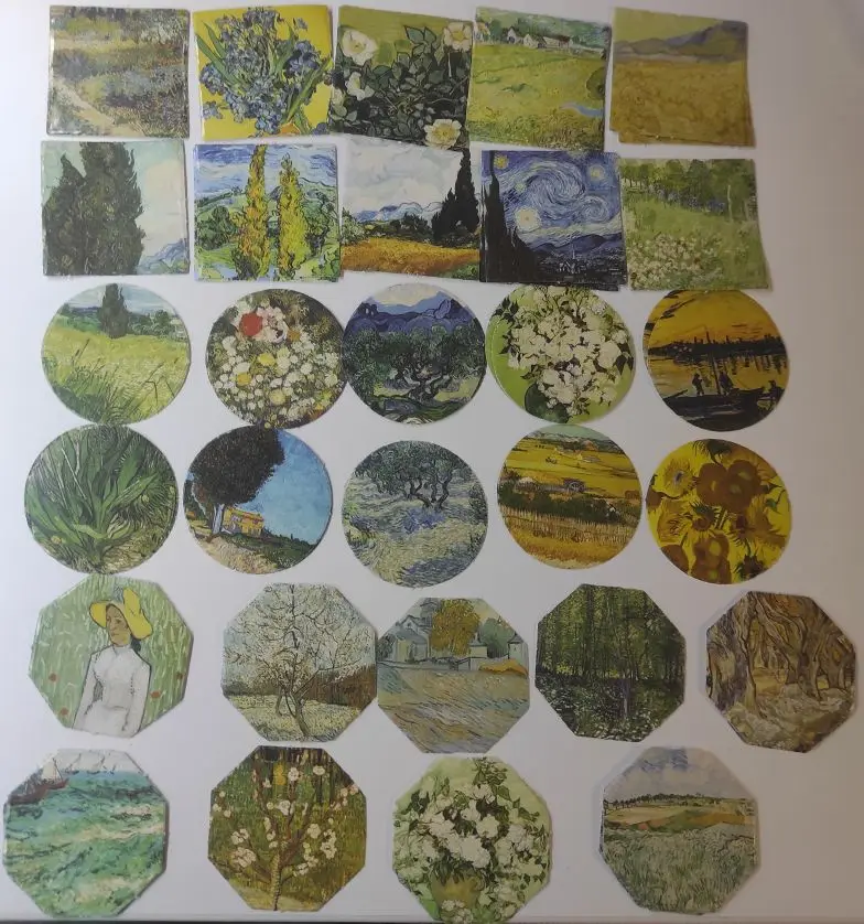 шли около месяца, некоторые слегка помялись, но это не критично. есть повторяющиеся картинки
