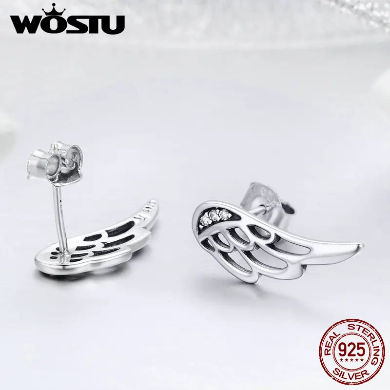 Женские серьги в виде пера WOSTU, серьги в виде пера из серебра 925 пробы с крыльями феи, S925