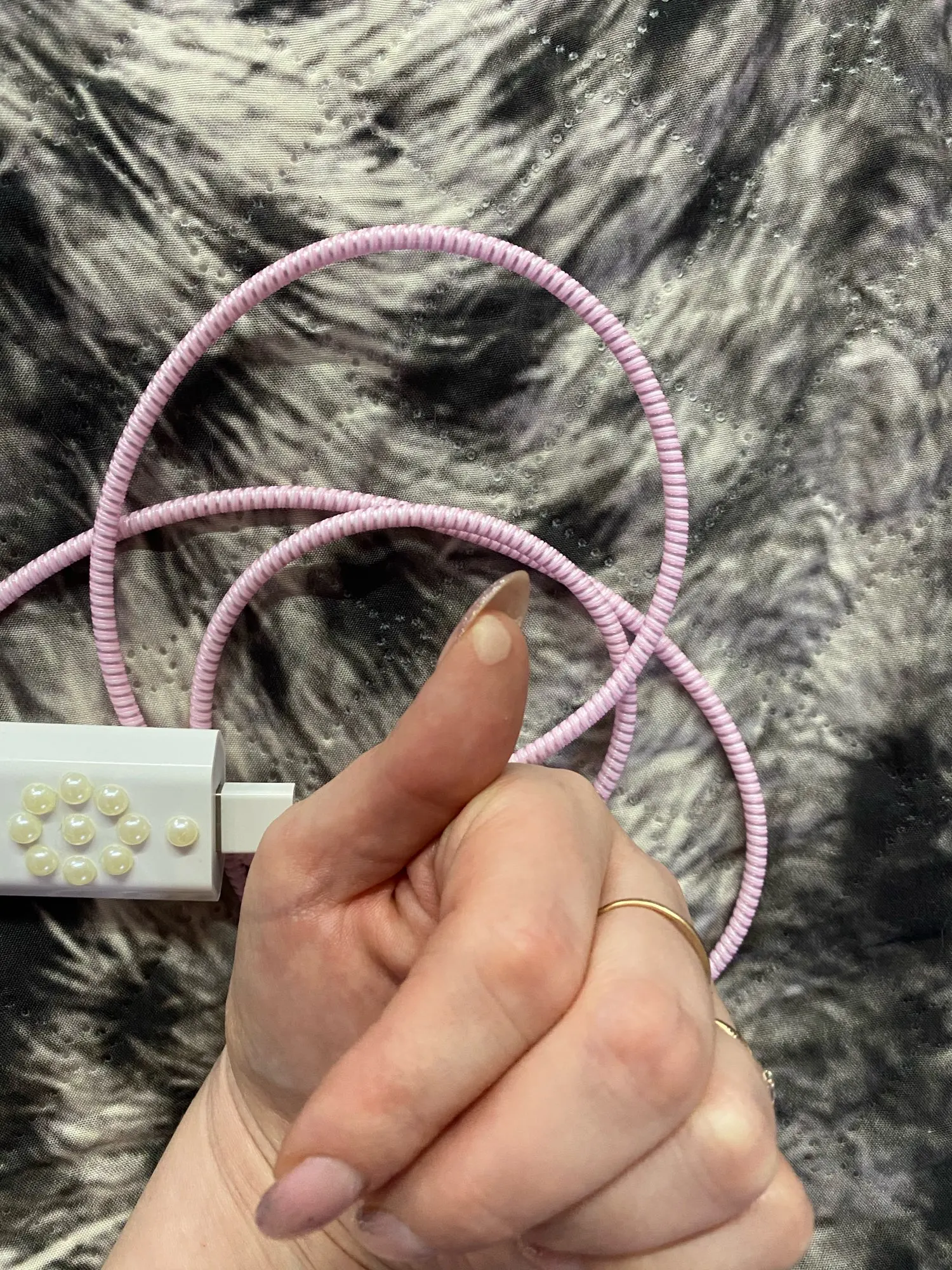 Доставка очень быстрая, упаковка отличная, обмотала вокруг шнура (весьма долгий процесс), теперь шнур не заворачивается вокруг себя, очень удобно, покупкой довольна)) Длина товара очень длинная, после применения у меня еще остался остаток - на фото, его для других зарядок оставила.