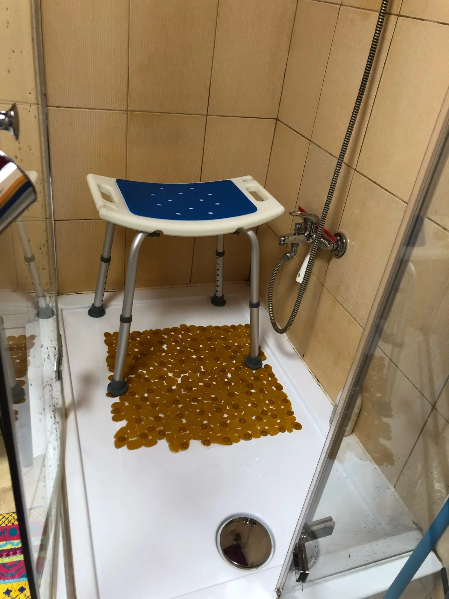 Стул качественный, устойчивый, для душевой подойдёт отлично! Все пришло целое и в полном комплекте. Доставка из России долгая. До Краснодарского края посылка шла 20 дней.