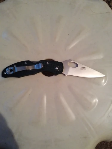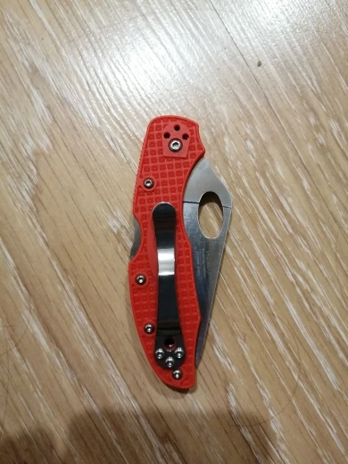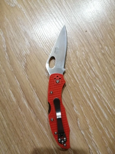 Хороший складной нож. Пришёл довольно быстро, не отслеживался. Есть рельефная клипса для фиксации. Не скользящая рукоятка, острое лезвие. Довольно-таки туго складывается, но думаю это вопрос времени. Рекомендую!