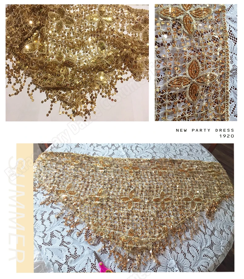 Шарф для танца живота, эластичный длинный шарф с кисточками и треугольными блестками, пояс для костюма для танца живота, шали и аксессуары ручной вязки, 10 цветов