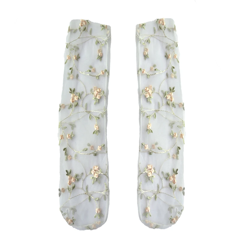 Новые летние женские милые носки с вышитыми цветами. Прозрачные кружевные сетчатые носки с цветочным принтом в стиле Лолиты для девочек