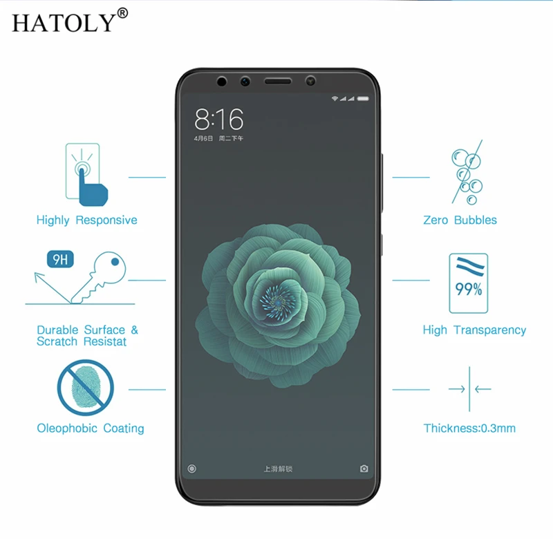 Закаленное стекло для Xiaomi Mi A2, 2 шт., ультратонкая Защита экрана для Xiaomi Mi 6X, пленка для Xiaomi Mi A2 6X, стекло 5,99 дюйма HATOLY