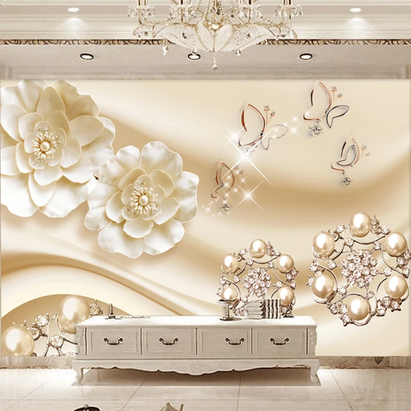 Пользовательские фото обои 3D стерео ювелирные изделия Бабочка Цветы Фрески Гостиная ТВ диван фон настенная ткань водонепроницаемые обои