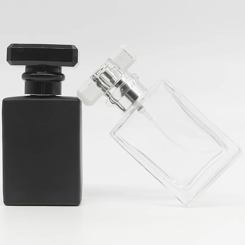 10 шт.лот 30 мл 50 мл стеклянная бутылка для духов квадратный многоразовый распылитель черная прозрачная стеклянная бутылка для косметики