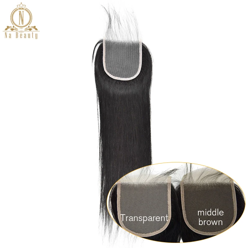 Прямой прозрачный кружевной фронтальный 13X4 уха-уха свободная часть Remy бразильские человеческие волосы Прозрачная Кружевная застежка натуральный черный цвет от 10 до 20 дюймов для женщин с детскими волосами Na Beauty