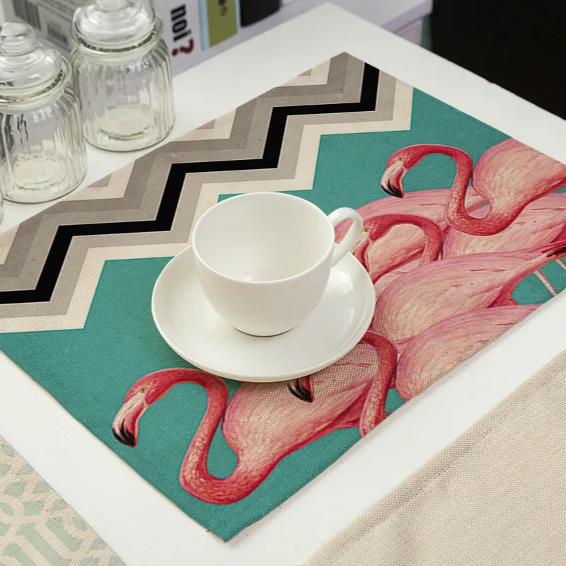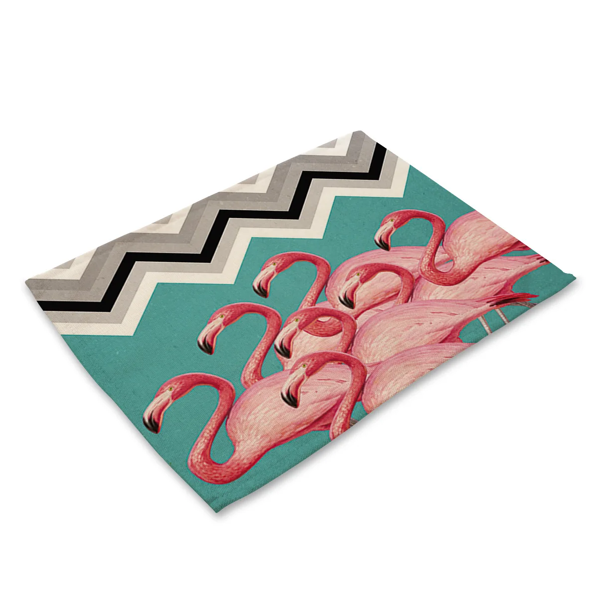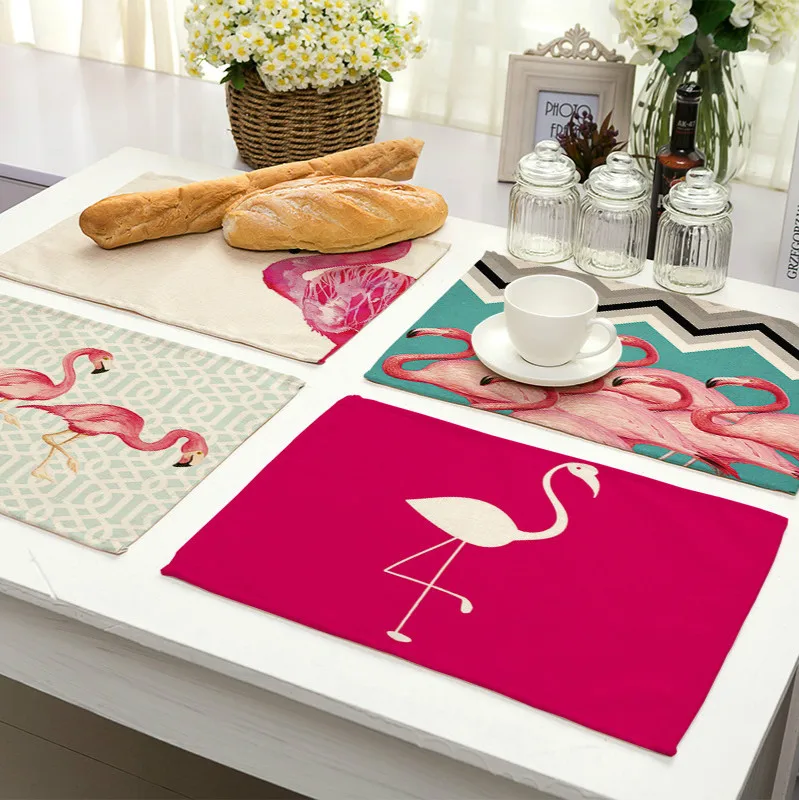 Мультфильм, животное, Фламинго Птица дизайн подставки под чашки искусственная льняная салфетка обеденный настольные коврики для кухни коврики аксессуары для украшения дома