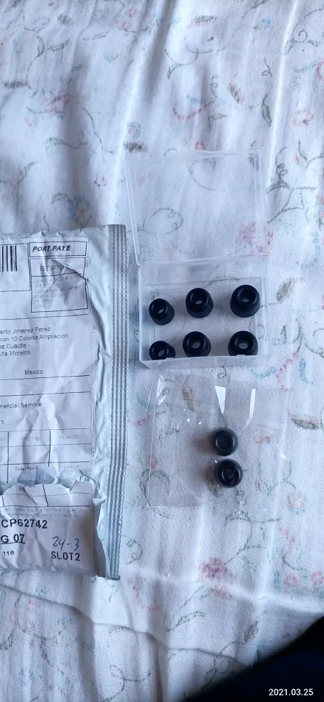 Заказ обычного качества прибыл, проблема в том, что он был больше, чем ожидалось, диаметр 11 мм для самых маленьких размеров S, они раздражают для маленьких ушей