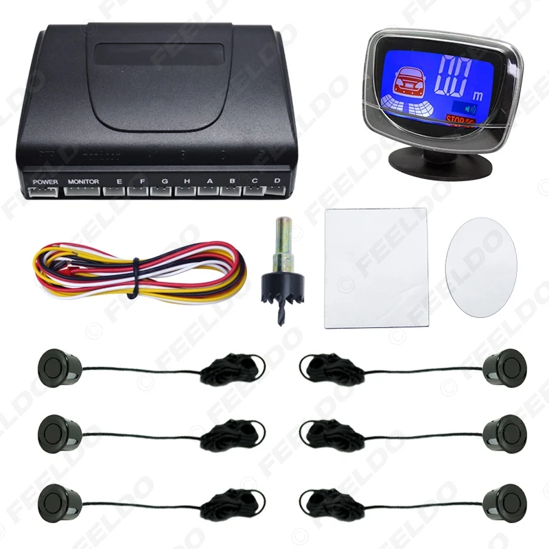 FEELDO 1 комплект 6 датчиков заднийпередний автомобильный ЖК-монитор дисплей датчик парковки обратный резервный Радар Комплект