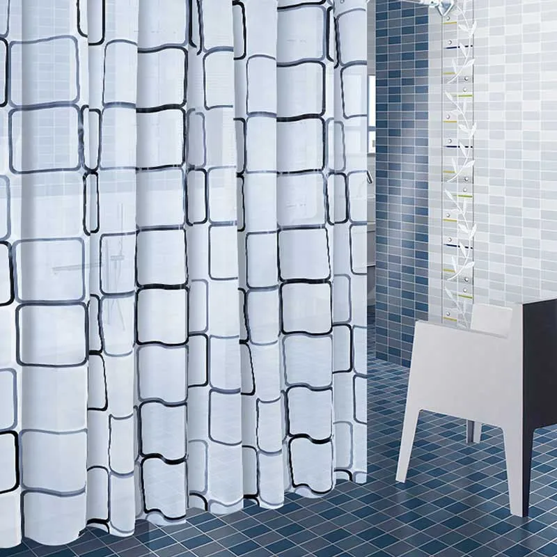 Занавеска для душа, водонепроницаемая, в клетку, с геометрическим узором