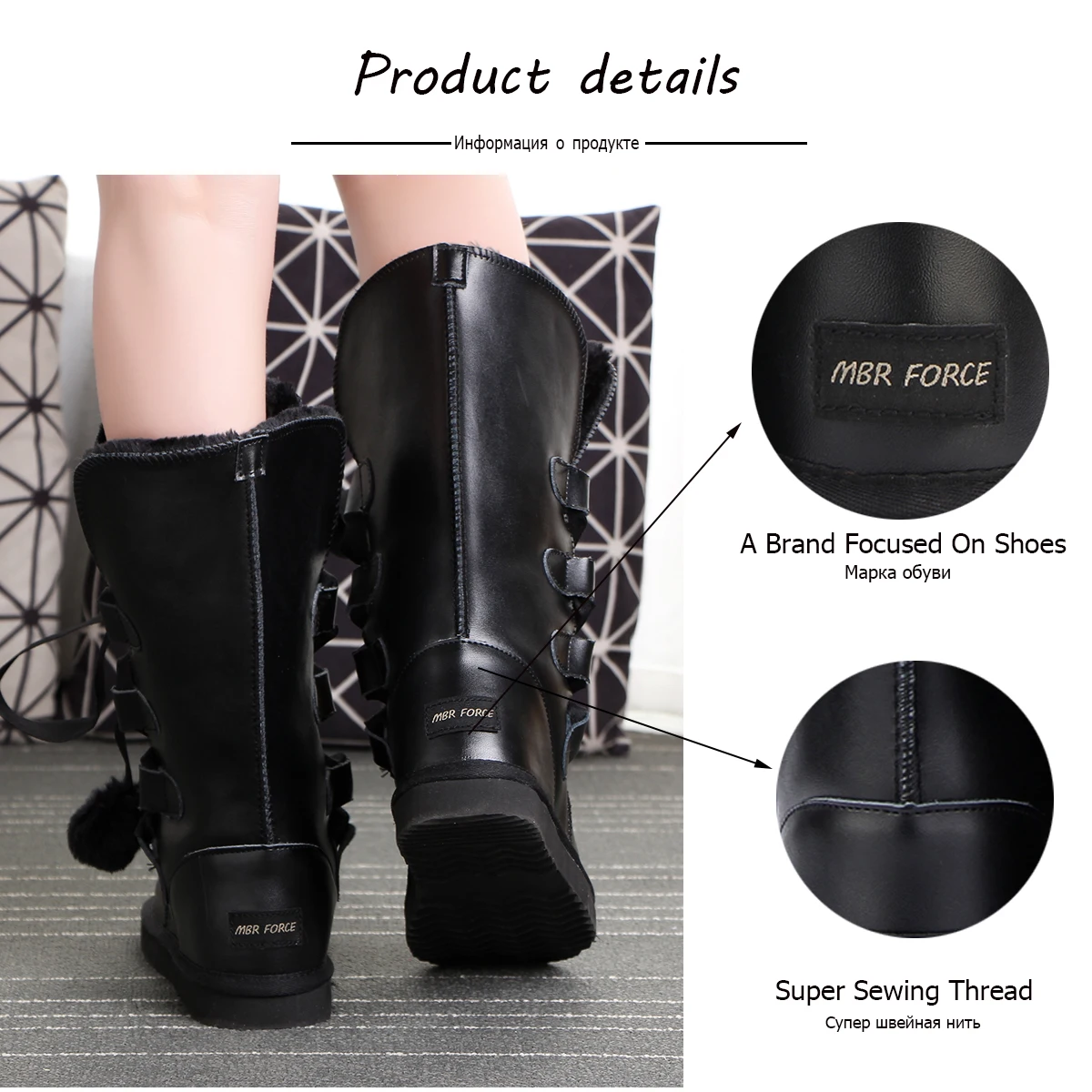 MBR FORCEклассические женские зимние сапоги; Кожаная зимняя обувь; bota feminina botas mujer zapatos; Женские водонепроницаемые зимние сапоги