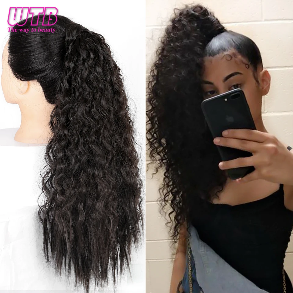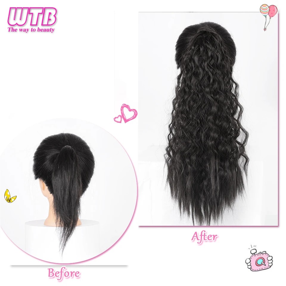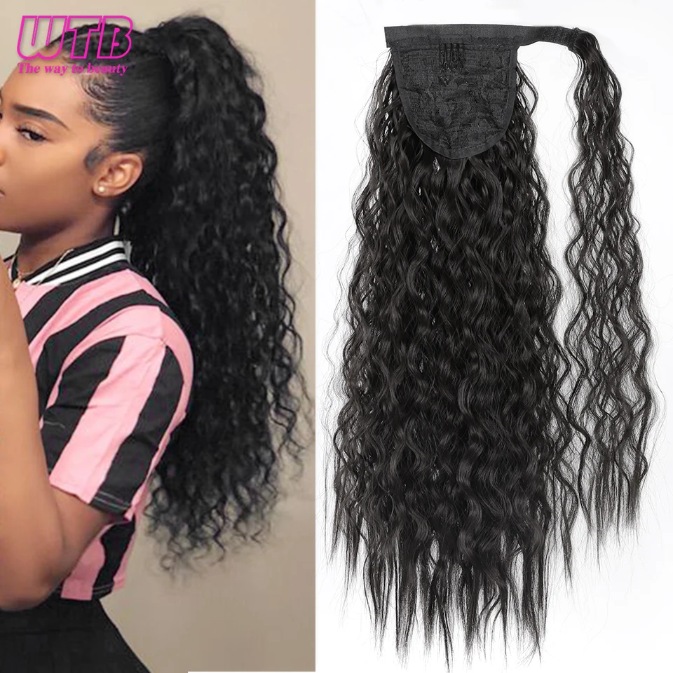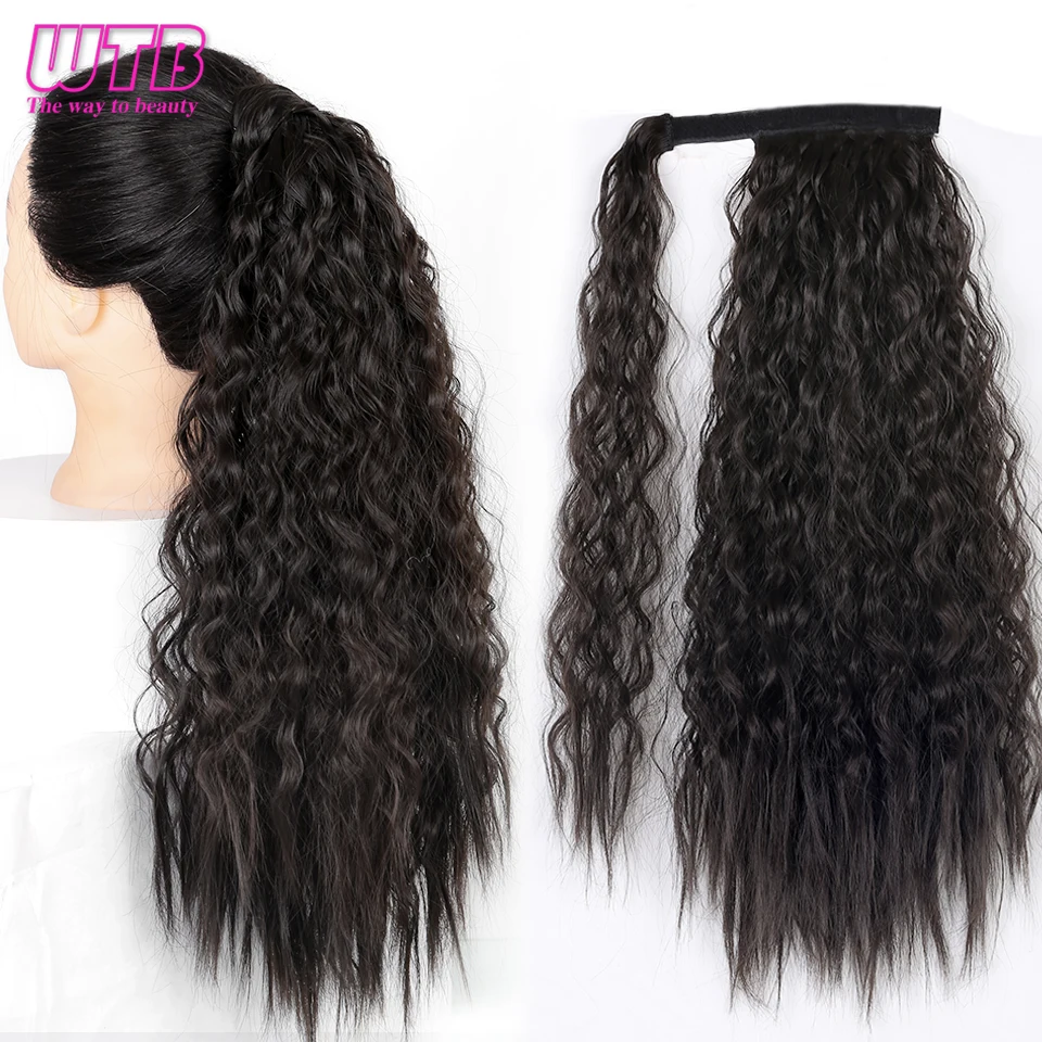 WTB длинная Кукуруза кудрявая синтетические конский хвост обертка на клипсе шиньоны для женщин черный коричневый хвост накладные волосы