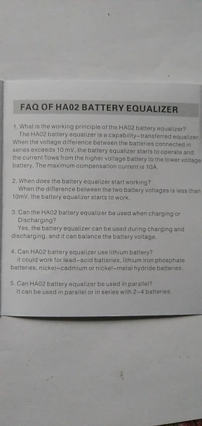 Отличный продукт, он действительно играет свою роль BMS, у меня есть разница максимум 0,8 В Я рекомендую это всем, у кого есть несколько батарей... У меня даже есть 2 комплекта 8 батарей x6v... Поэтому у меня есть BMS для 4 батарей... Очень доступная цена