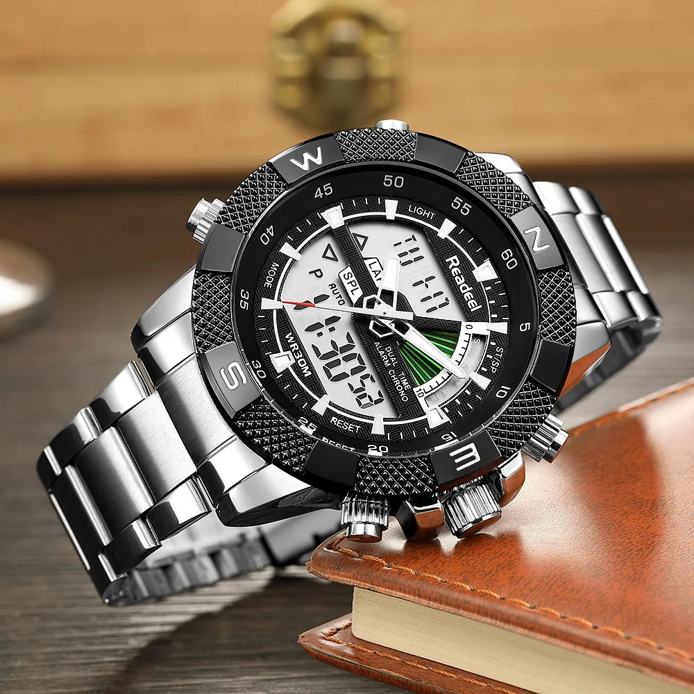 Readeel новые брендовые Роскошные мужские часы мужские из нержавеющей стали армейские военные спортивные светодиодные кварцевые часы мужские часы