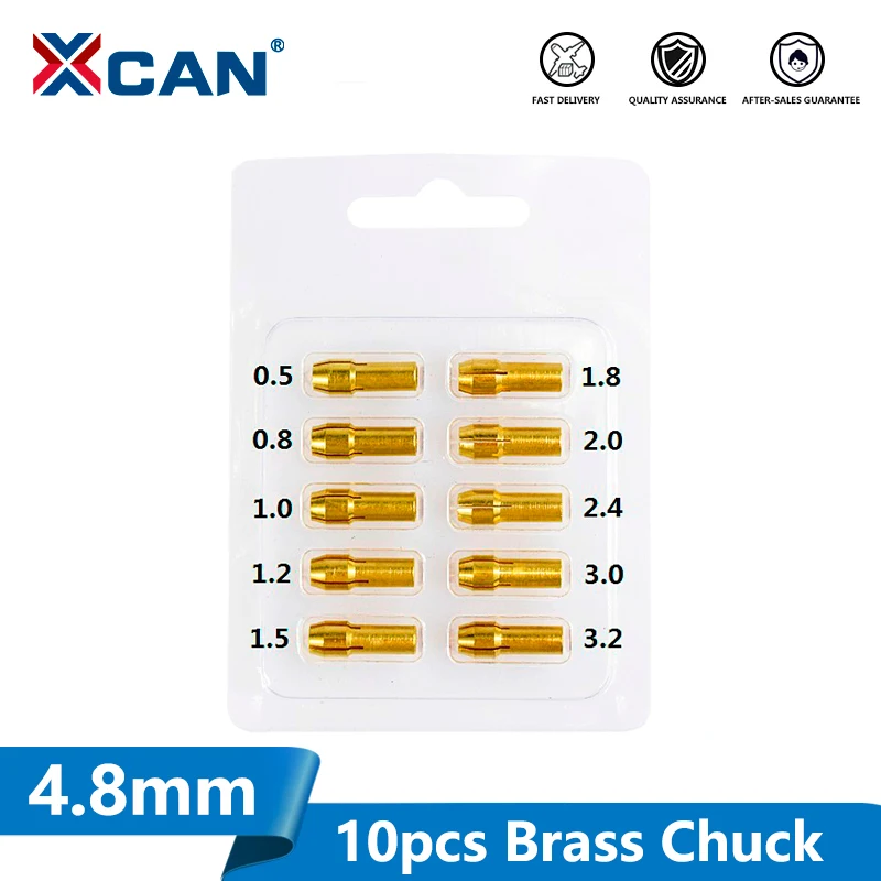 Патроны цанговые XCAN для мини дрели, диаметр 0,5-3,2 мм, хвостовик 4,8 мм, 10 шт.