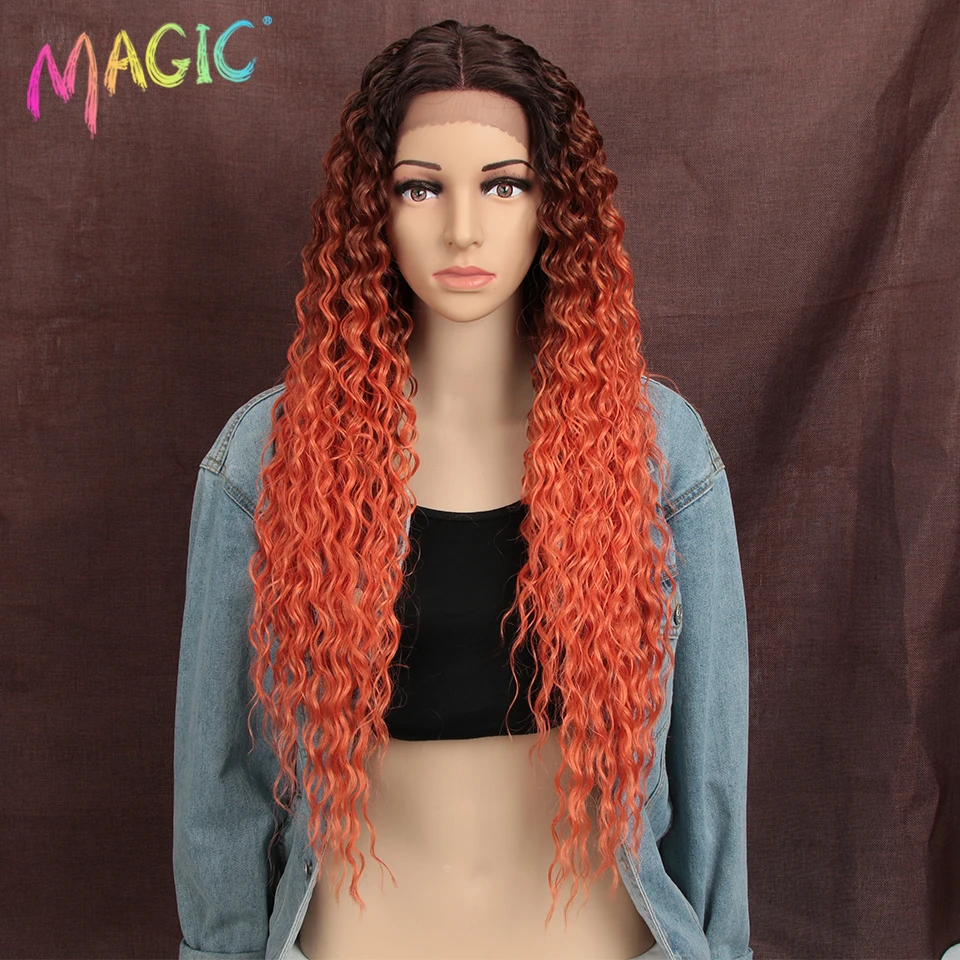 Волшебный кудрявый синтетический парик на сетке 30-38 дюймов Omber, светлые, красные, коричневые, высокотемпературные волосы для чернокожих женщин