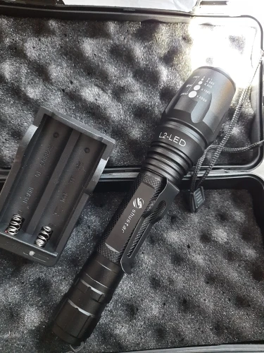 заказ дошёл быстро за две недели. Фонарик как в описании ,НО ПРОДАВЕЦ ПОЛОЖИЛ ФОНАРИК БЕЗ ЗУМА! Хотя на самом фонарике нарисована схема уменьшения и увеличения пучка света, на фотке видно. И ещё БОЛЬШОЙ МИНУС что на зарядном устройстве, вилка которая разкладывается , чтоб её воткнуть в розетку , нужно найти старую не глубокую не евро розетку или удлинитель как в СССР. Только тогда можно будет заряжать. А вообщем всё работает.