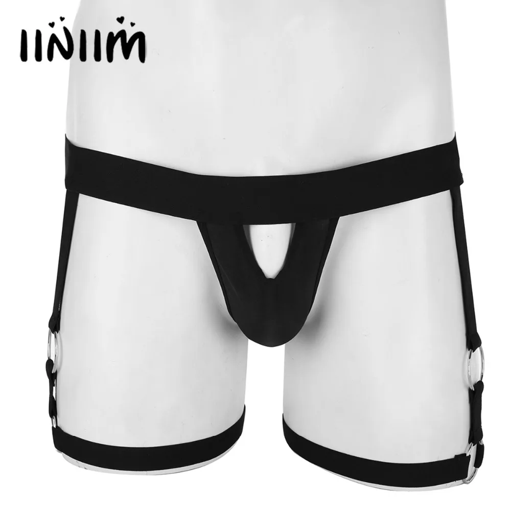 Сексуальное мужское нижнее белье, бикини, нижнее белье с подвязками для ног, уплотнительные кольца, прозрачная сумка, открытая ягодица, стринги, трусы