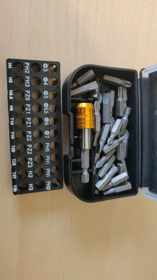 Держатель бит развалился после 5 саморезов. Биты из пластелина. Но доставка быстрая