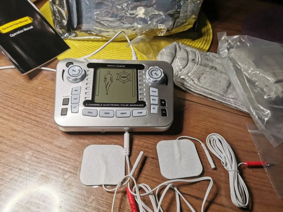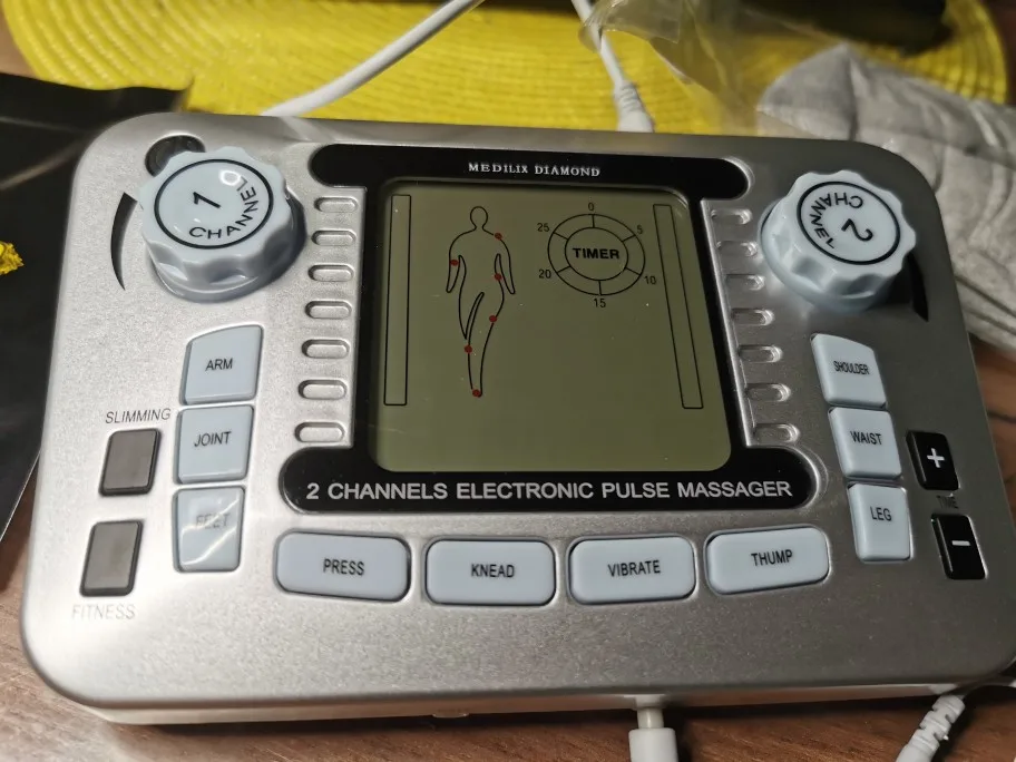 Инструкции по эксплуатации:1. Осторожно Откройте батарейный ящик, четыре части 1,5 V батареи в нем, в том числе и закройте батарейного ящика. (Адаптер питания 6 в также может быть применен)2. Прикрепите электроды к соответствующим частям тела, которые необходимо массировать, а затем правильно Соедините проводящий провод с электродными прокладками. (Примечание: 2 электрода колодки/4 электрода колодки должны быть подключены одновременно)3. Откройте кнопку ВКЛ-ВЫКЛ основного аппарата, и эскиз режима работы в соответствии с инструкцией пользователя будет отображаться на экране. Вы можете выбрать различные режимы терапии (нажмите, разминайте, вибрируйте и ударяйте) только в соответствии с вашими личными предпочтениями.4. Скорость терапии и интенсивность машины могут быть скорректированы гибко, вы можете настроить регулятор интенсивности основной машины от ниже до выше.5. Вы также можете нажать кнопку «рука», «сустав», «ноги», «плечо», «Талия» и «нога», чтобы выбрать различные части терапии.6. По умолчанию рабочее время машины составляет 30 минут, и машина автоматически остановится, как только она непрерывно работает в течение 30 минут. Машина также имеет 5-секундную функцию самопроверки, и машина автоматически отрежет после удаления электродных подушек с кожи в течение пяти секунд.7. Двухканальная система позволяет использовать два человека одновременно, а интенсивность и время можно регулировать отдельно.8. При остановке машины, pis выключает питание через переключение кнопки ВКЛ-ВЫКЛ, и сбросить выключатель питания, как только он будет работать снова.