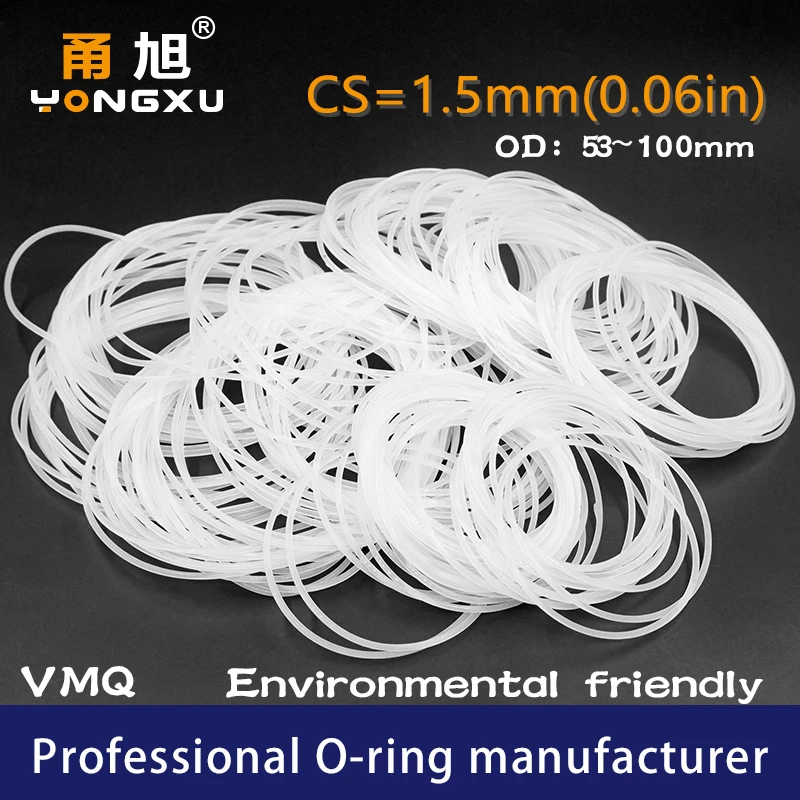 Уплотнительное кольцо VMQ, толщина 1, 5 мм, OD5355606570727580859095100*1,5, силиконовая резиновая Изолированная Водонепроницаемая шайба