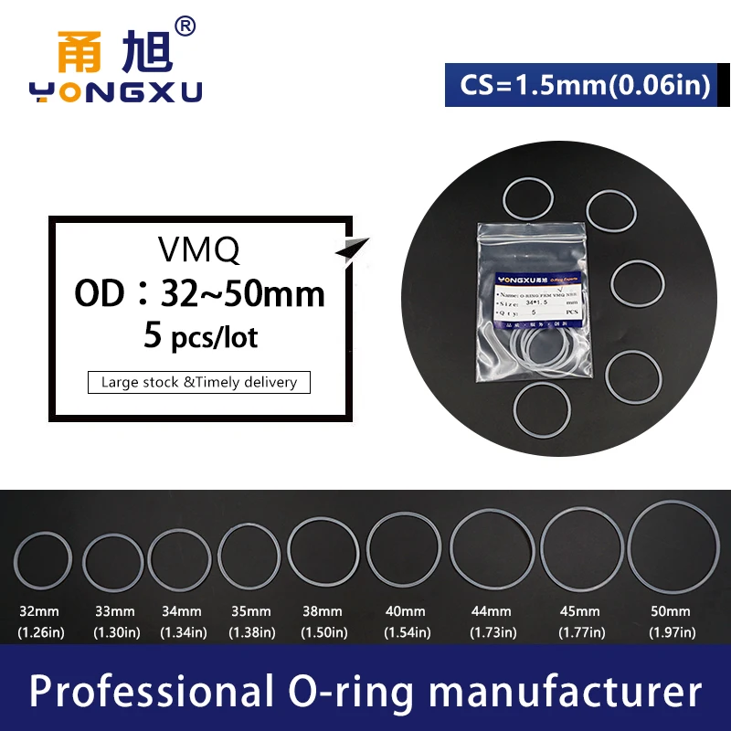 Уплотнительное кольцо VMQ, водонепроницаемая прокладка из силикона, толщина 1, 5 мм, OD323334353840444550*1,5 мм, 5 шт.