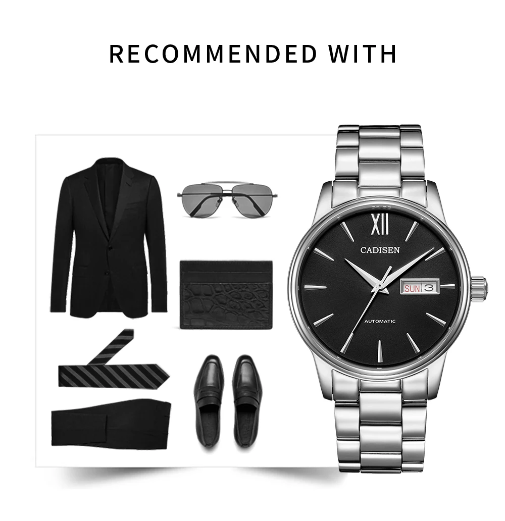 Часы наручные CADISEN Мужские автоматические, брендовые механические в японском стиле, NH36A, с датой, неделей