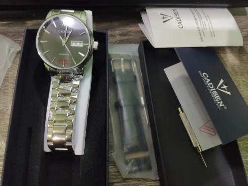 Красивые часы! Безупречная полировка и общее качество. Прибыл в Канаду в течение 2 недель. В комплект входят инструменты, дополнительные Пружинные планки и кожаный ремешок. Получил его по размеру, и он очень удобный, не давит на волосы до сих пор. По цене, трудно себе представить, вы можете найти лучшее качество Автоматические часы для платья. Я рекомендую часы и продавца.