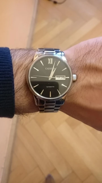 Я получил часы и был приятно удивлен качеством сборки. Часы действительно красивые и не большие. Только Корона может быть немного меньше. Также положительный был дополнительный ремешок для часов (подарок), но я думаю, что оригинальный браслет из нержавеющей стали является идеальным. Только 26 евро за таможню, которую я должен был заплатить почтовой службе, было немного тускло. Дизайн стильный и "всегда". Так что окончательная цена была 48 евро + 26 евро = 74 евро, но часы полностью стоят того.