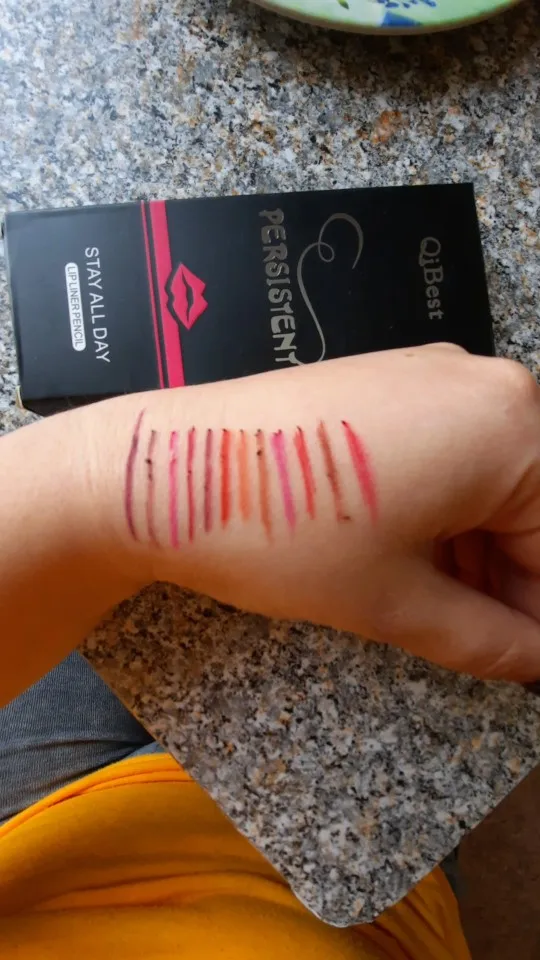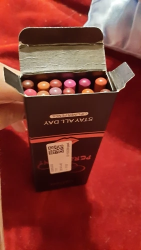 Хорошая пигментация и цвета-это те, которые поставляются на фото. Карандаш немного твердый и немного повреждает губы, так как не кремовый .. Длительность является правильной и легко удаляется мылом. Я заказал его 27 ноября и прибыл 15 декабря.