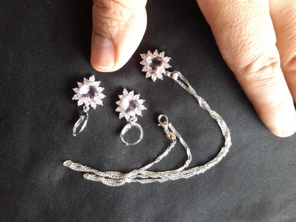 Ювелирные изделия очень красивые, но это не серебро, возможно, это сплав, но он имеет серый цвет, не соответствующий серебру. Похоже, что это серебро или хирургическая сталь. Я проверил магнит, и он не прилипал, но это определенно не серебро.