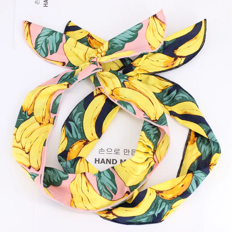 Женская повязка на голову с принтом, летняя эластичная повязка на голову с бантом, украшение для волос в стиле ретро, аксессуары для волос сделай сам
