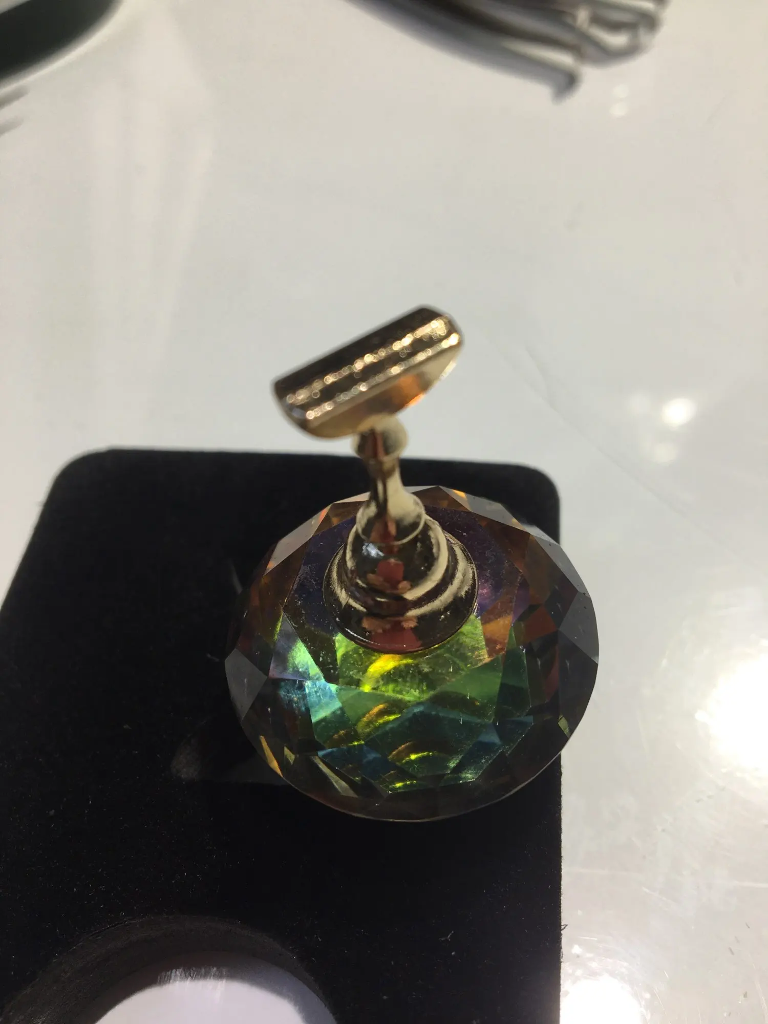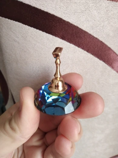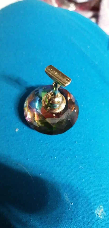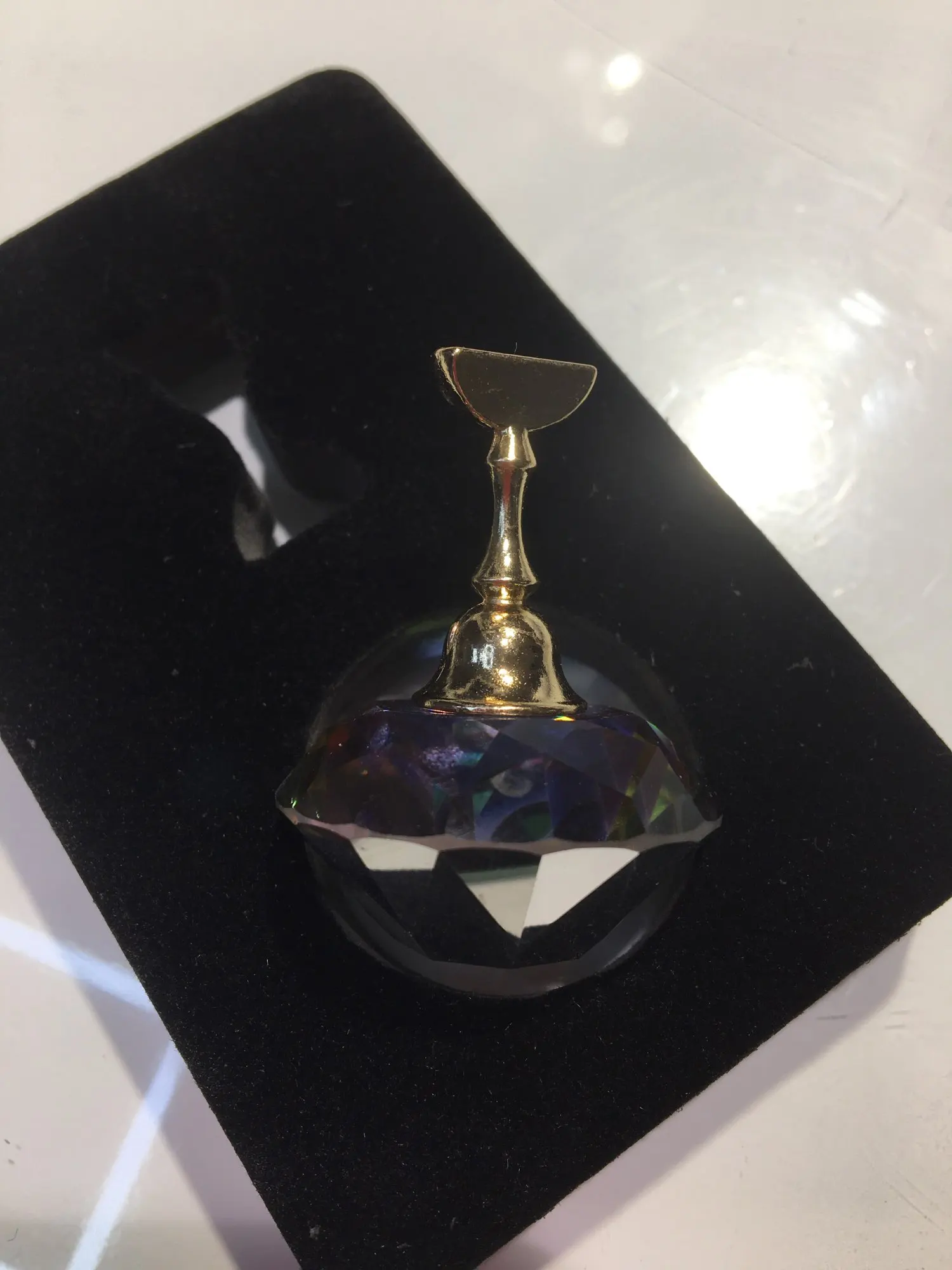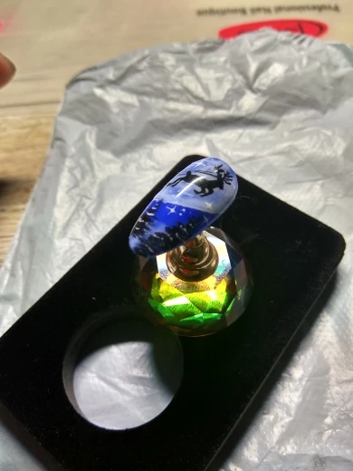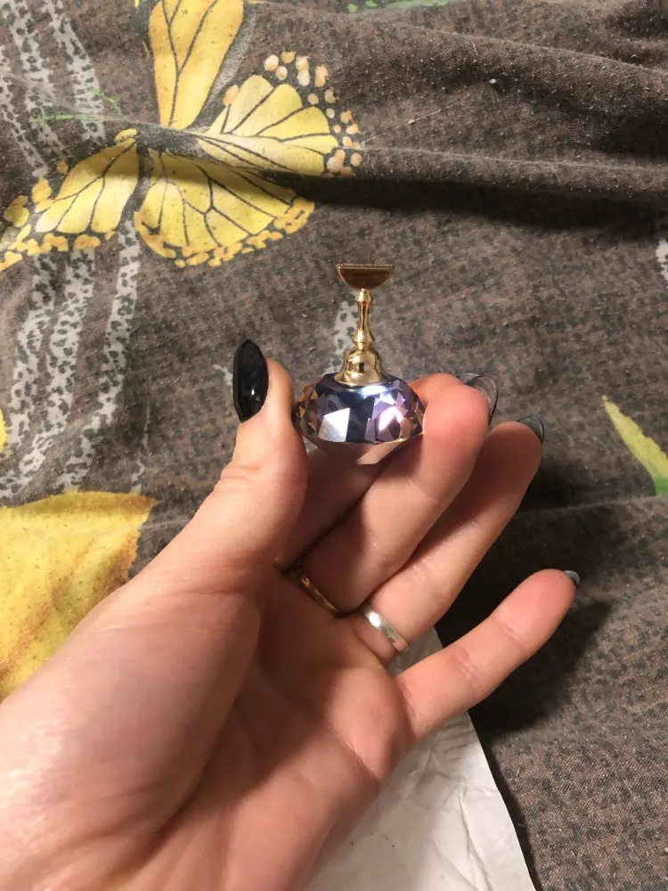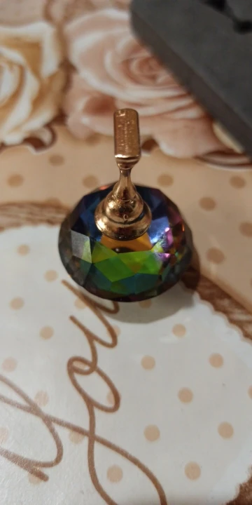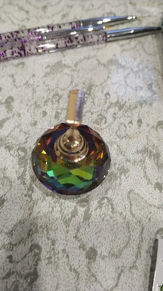 Дошёл кристалл в целости без сколов, магнит мощный и хорошо держит верхнюю часть(подставку) работать удобно, для крепления типсы использую двухсторонний скотч и после работы легко очищается,в кадре для фото дизайнов кристалл смотрится эффектно, в комплекте 1 кристалл 1 подставка и чёрный поролоновый держатель(на первом фото) какой либо дополнительной коробке нет.