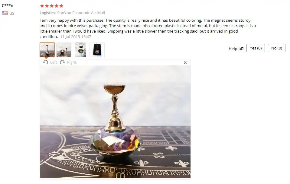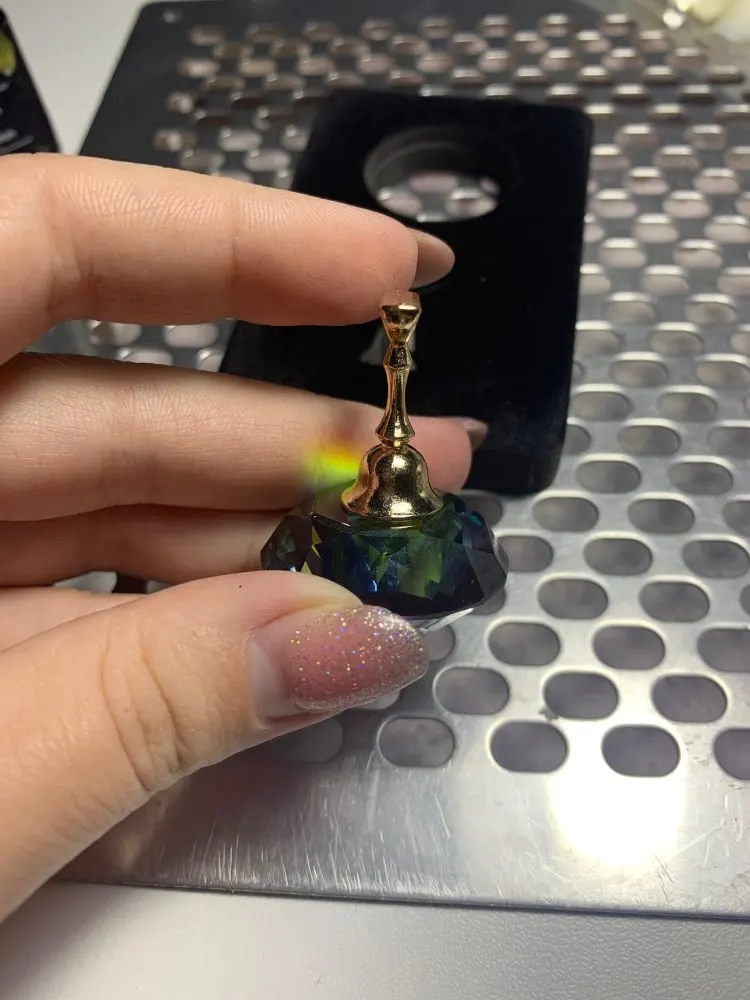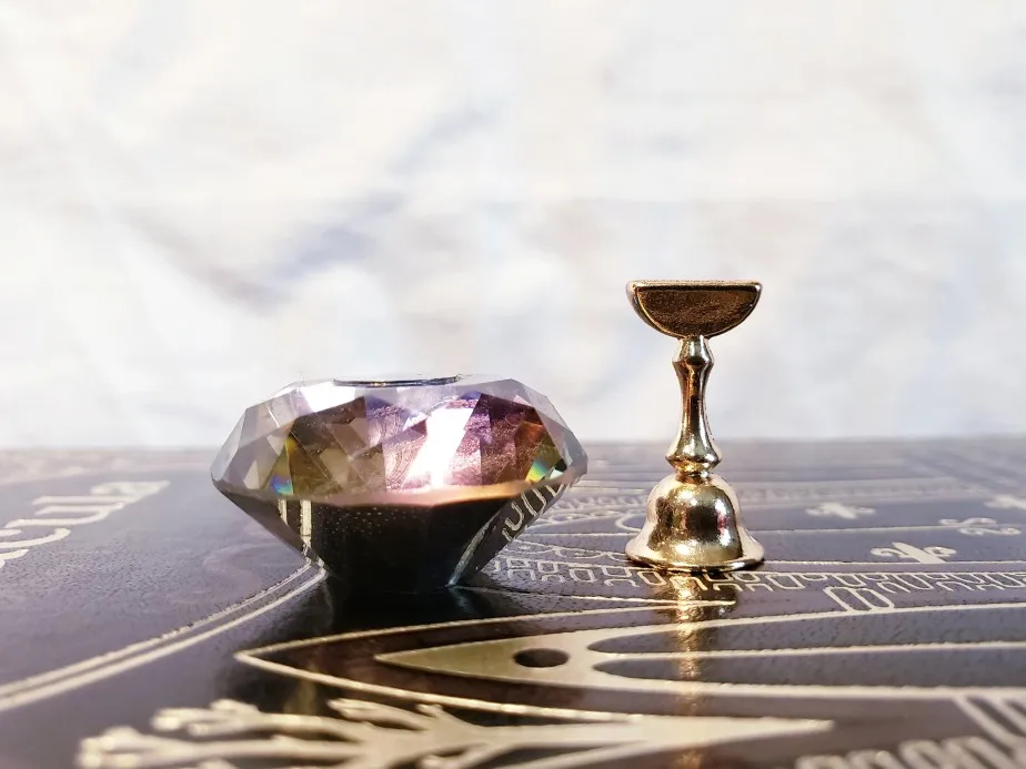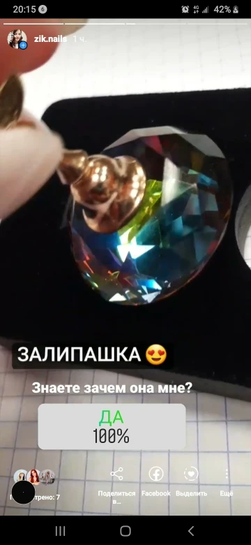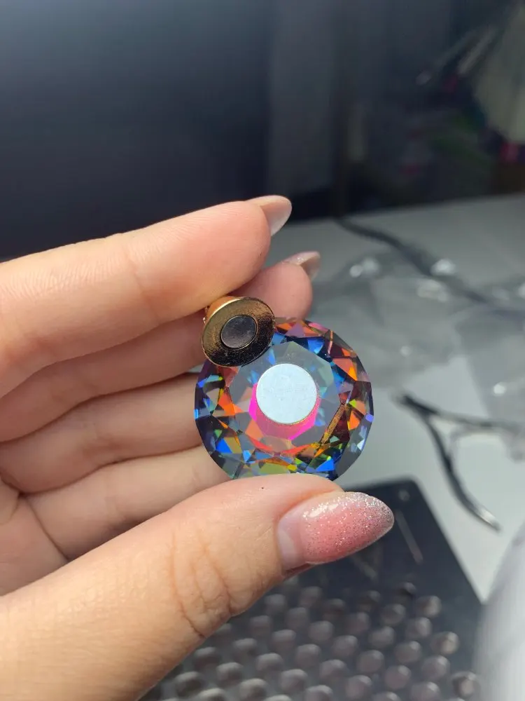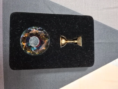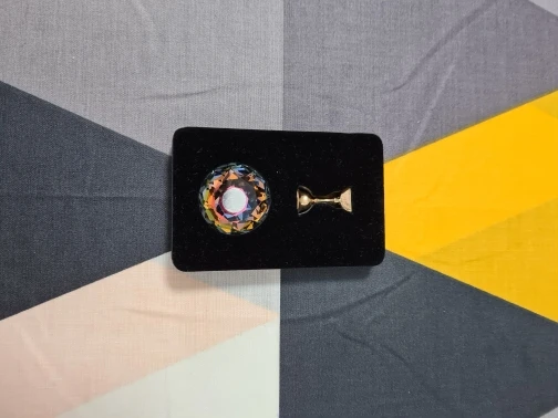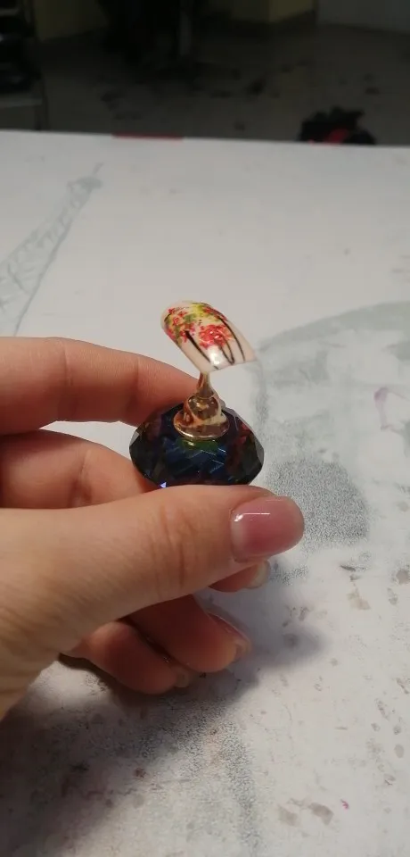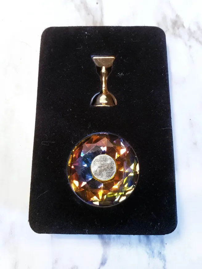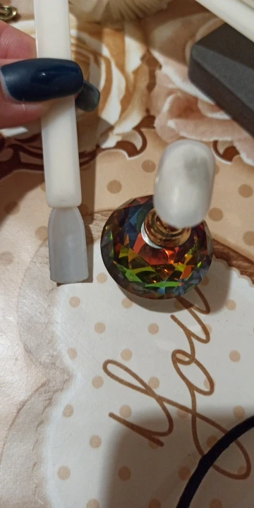 Дошёл кристалл в целости без сколов, магнит мощный и хорошо держит верхнюю часть(подставку) работать удобно, для крепления типсы использую двухсторонний скотч и после работы легко очищается,в кадре для фото дизайнов кристалл смотрится эффектно, в комплекте 1 кристалл 1 подставка и чёрный поролоновый держатель(на первом фото) какой либо дополнительной коробке нет.