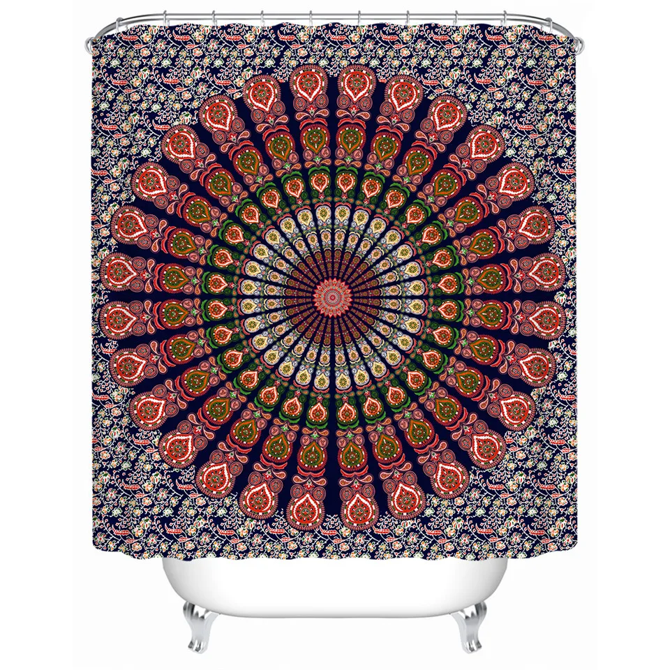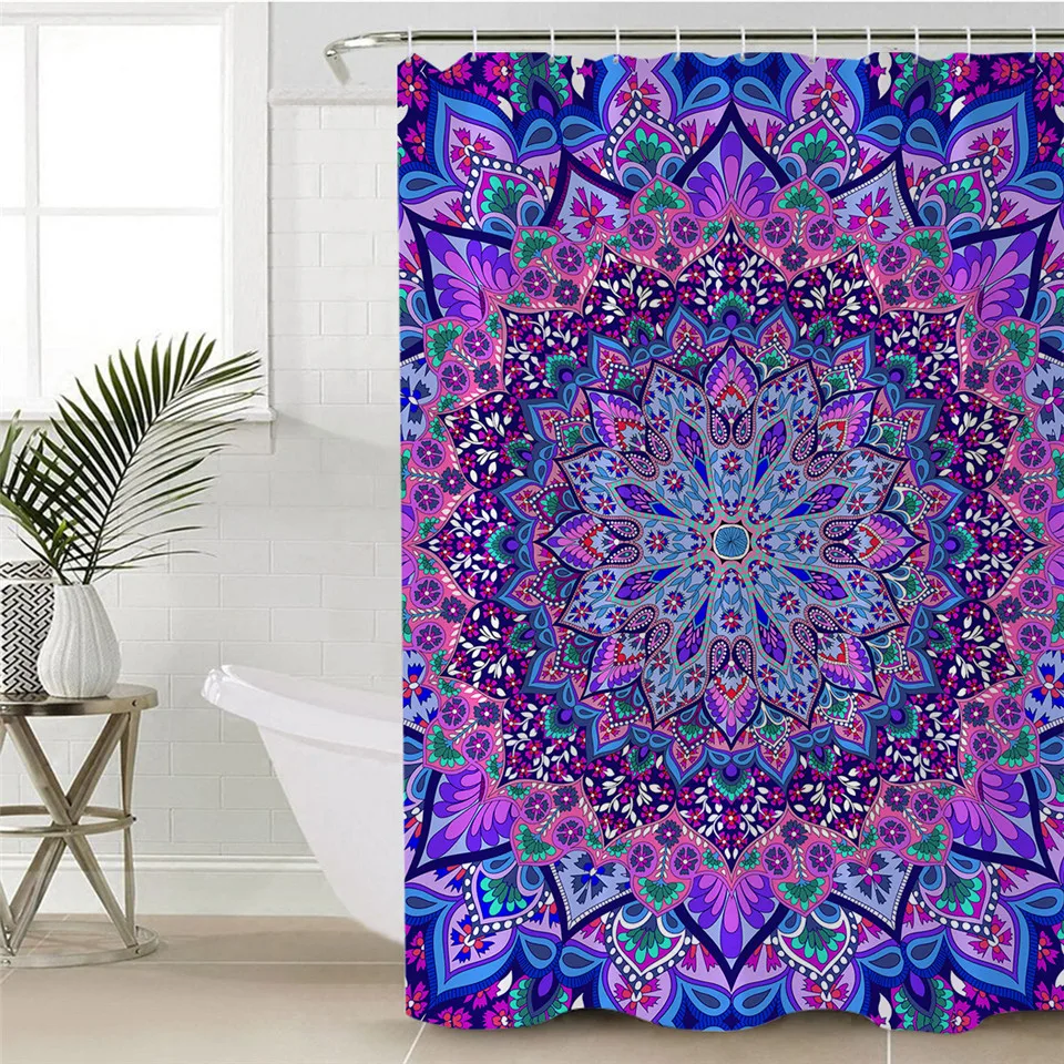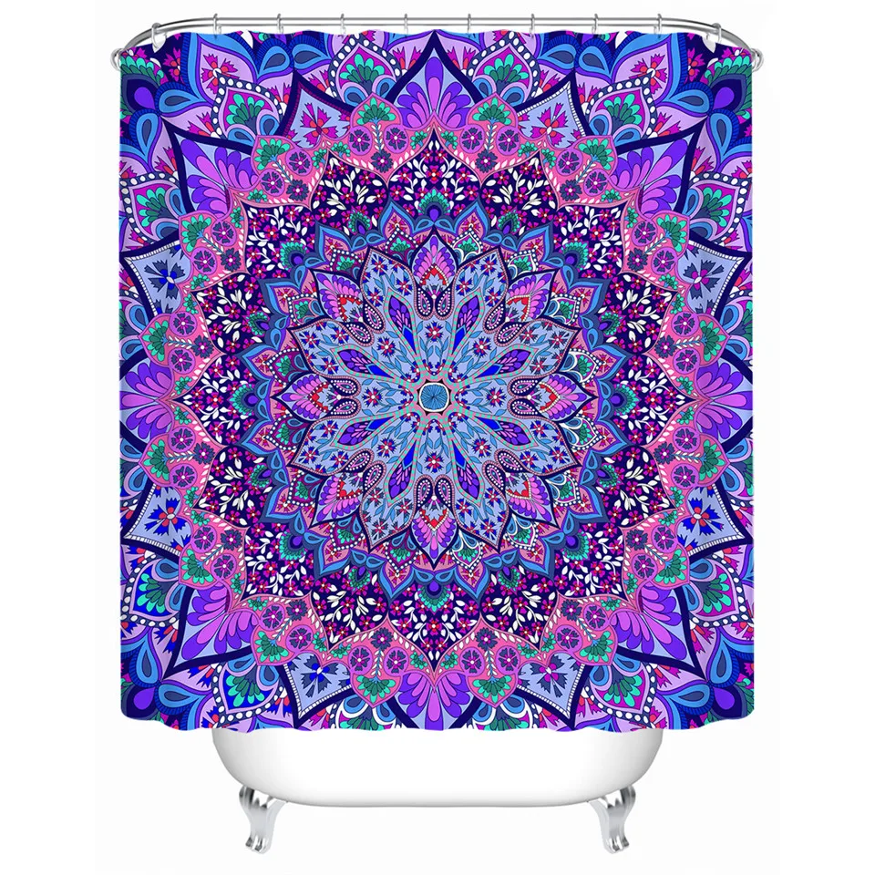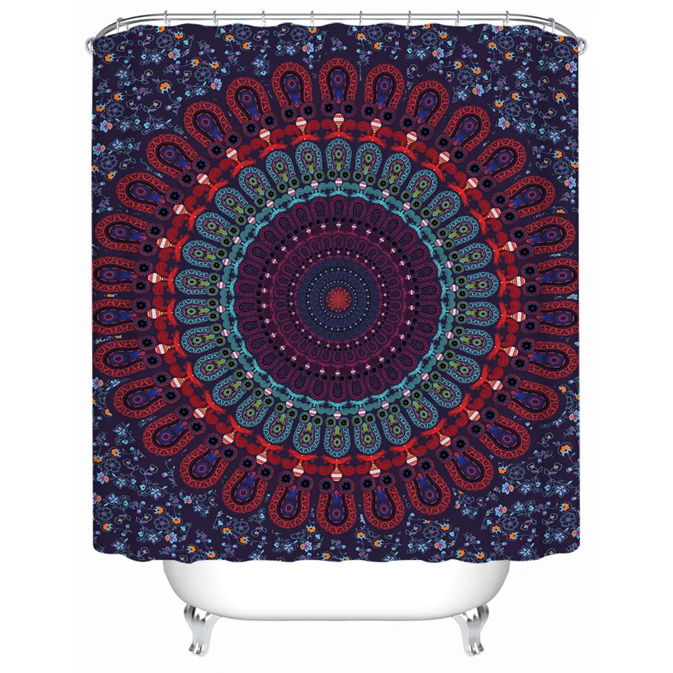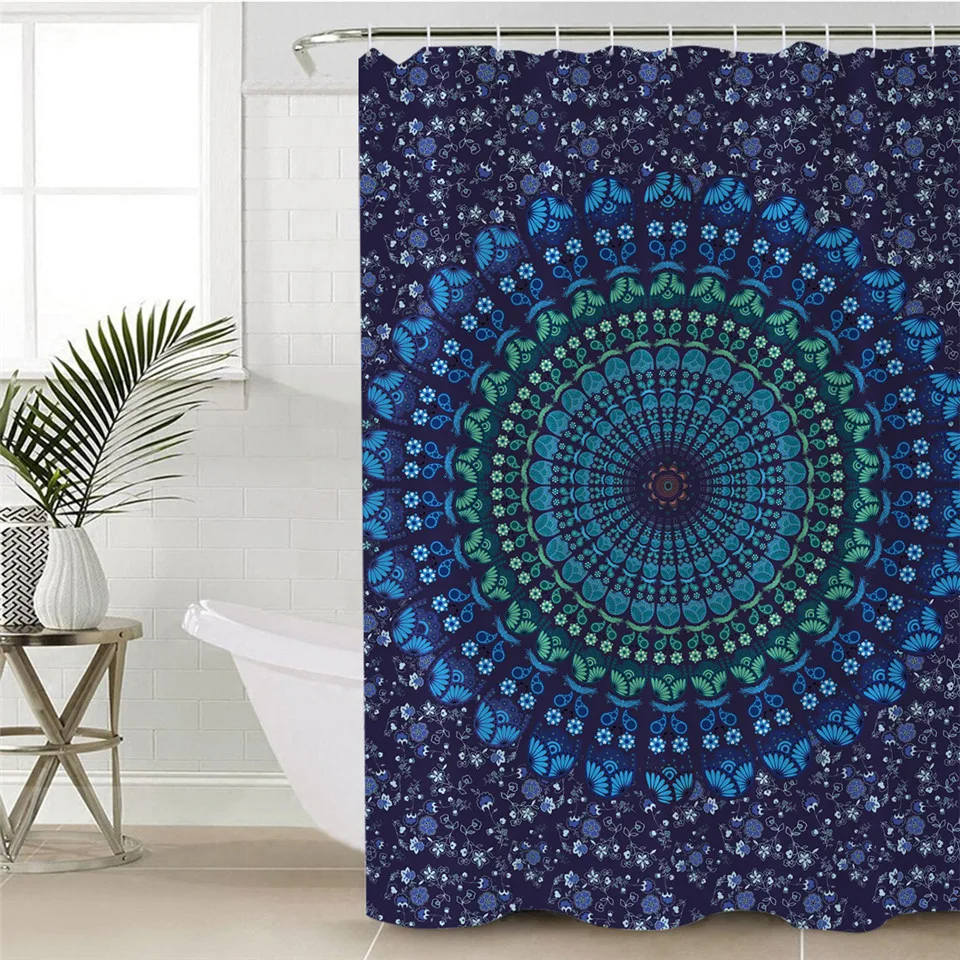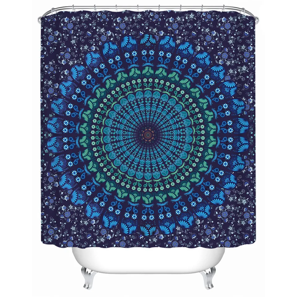 Декоративная занавеска для душа мандалы, водонепроницаемая полиэфирная синяя занавеска в стиле бохо с крючками для ванной комнаты 180x180 см