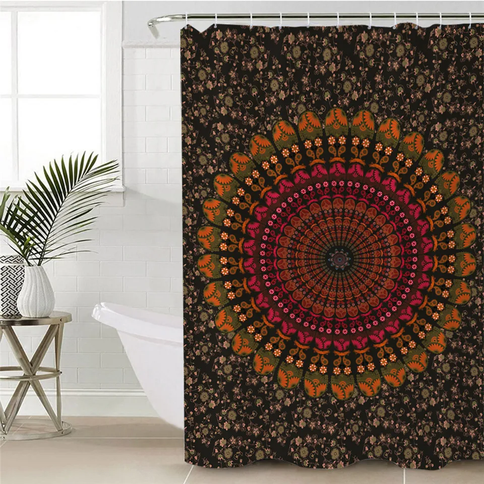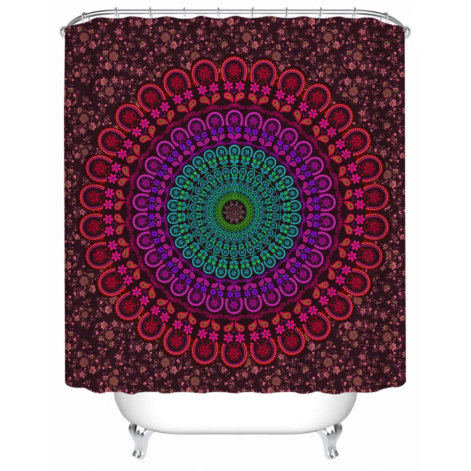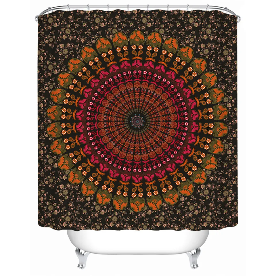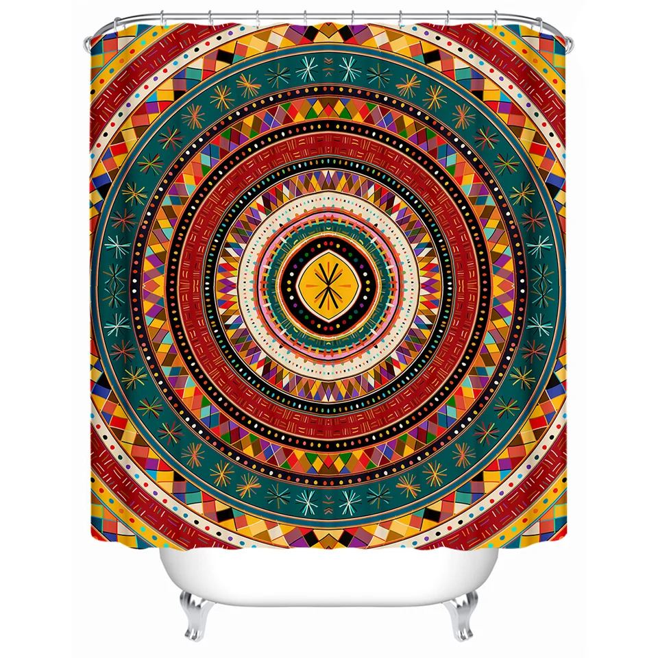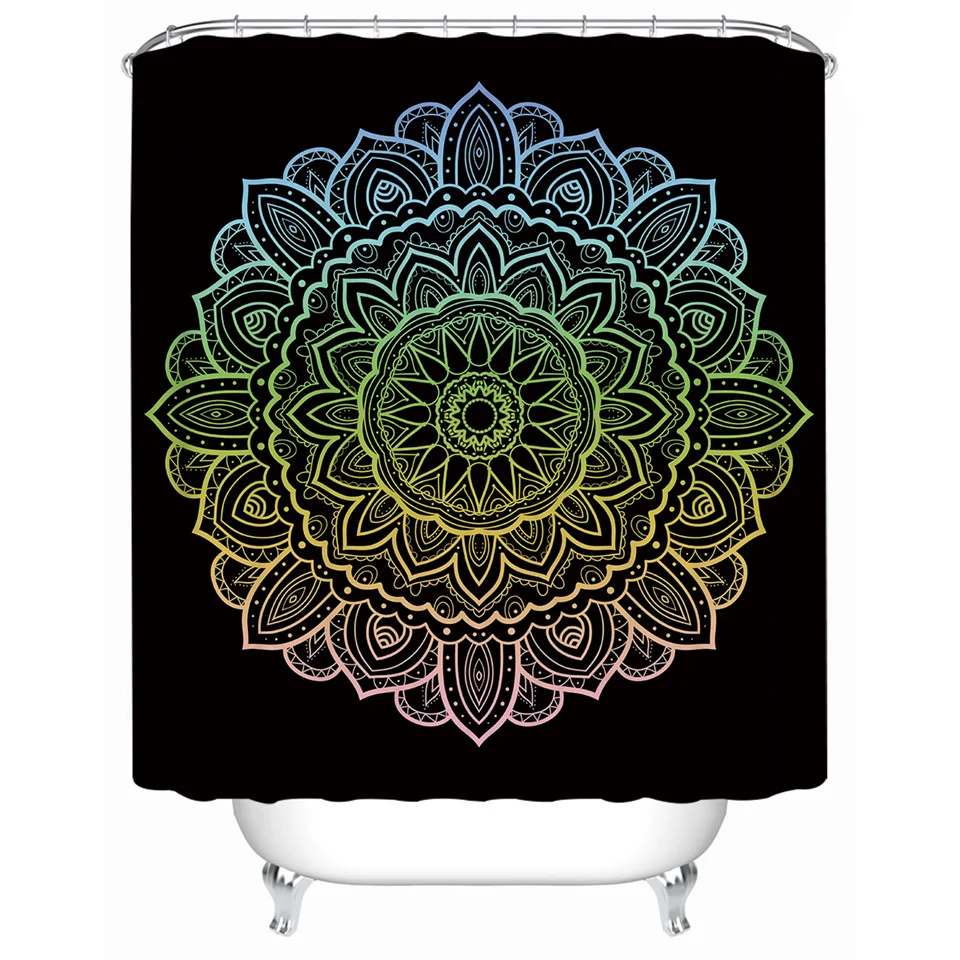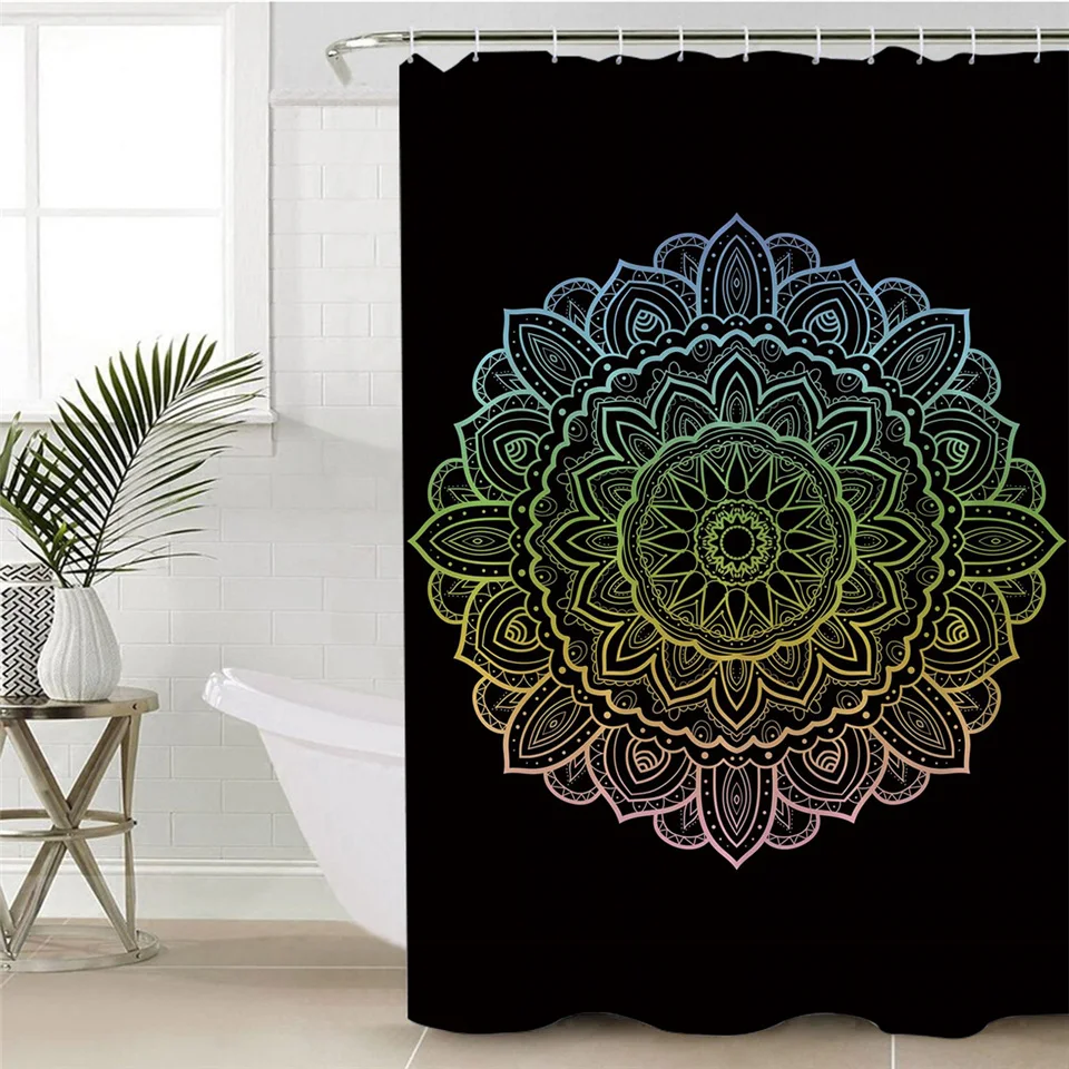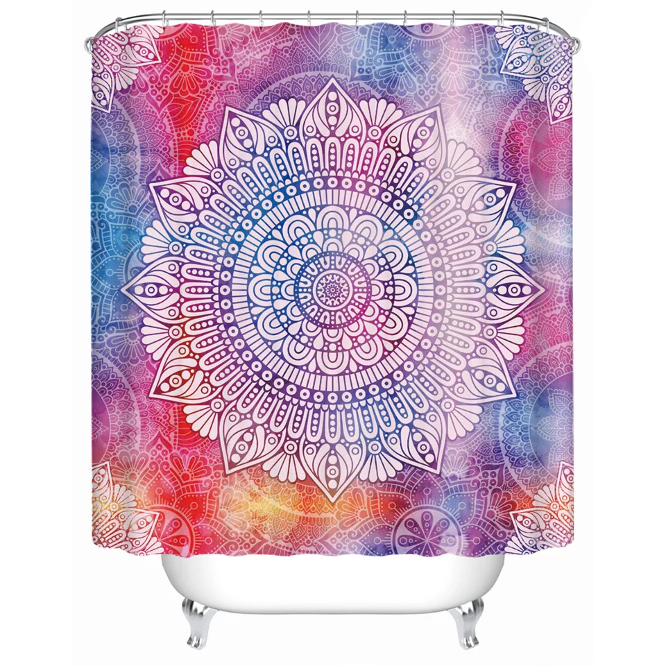 Декоративная занавеска для душа мандалы, водонепроницаемая полиэфирная синяя занавеска в стиле бохо с крючками для ванной комнаты 180x180 см