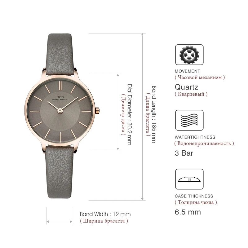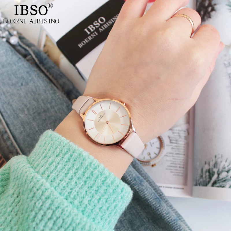 Женские кварцевые часы IBSO, ультратонкие, из натуральной кожи, 8 мм