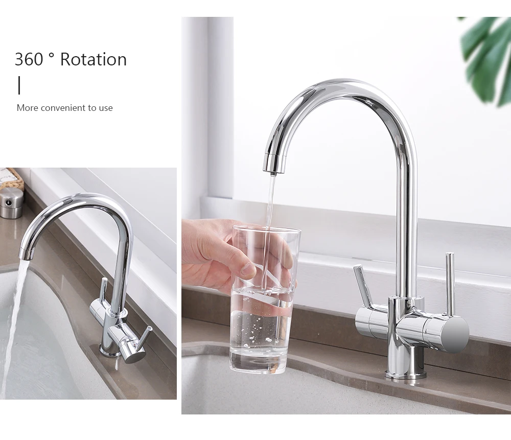 Смеситель для питьевой воды, с двумя ручками, поворот на 360 градусов